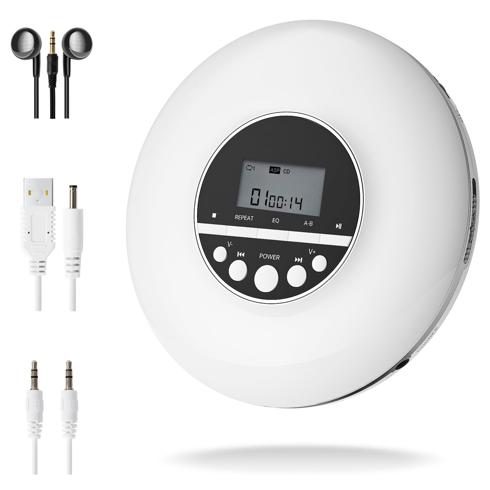 - [Suono HIFI Lossless] Questo lettore CD personale ha un suono lossless ad alta risoluzione con cuffie, offre una maggiore privacy, un suono perfetto che lo rende un dispositivo essenziale per gli ascoltatori appassionati. NOTA: se si desidera utilizzarlo in auto, è necessario un cavo AUX (INCLUSO), ed è necessario assicurarsi che ci sia un jack da 3,5 mm in auto e che supporti la riproduzione AUX.