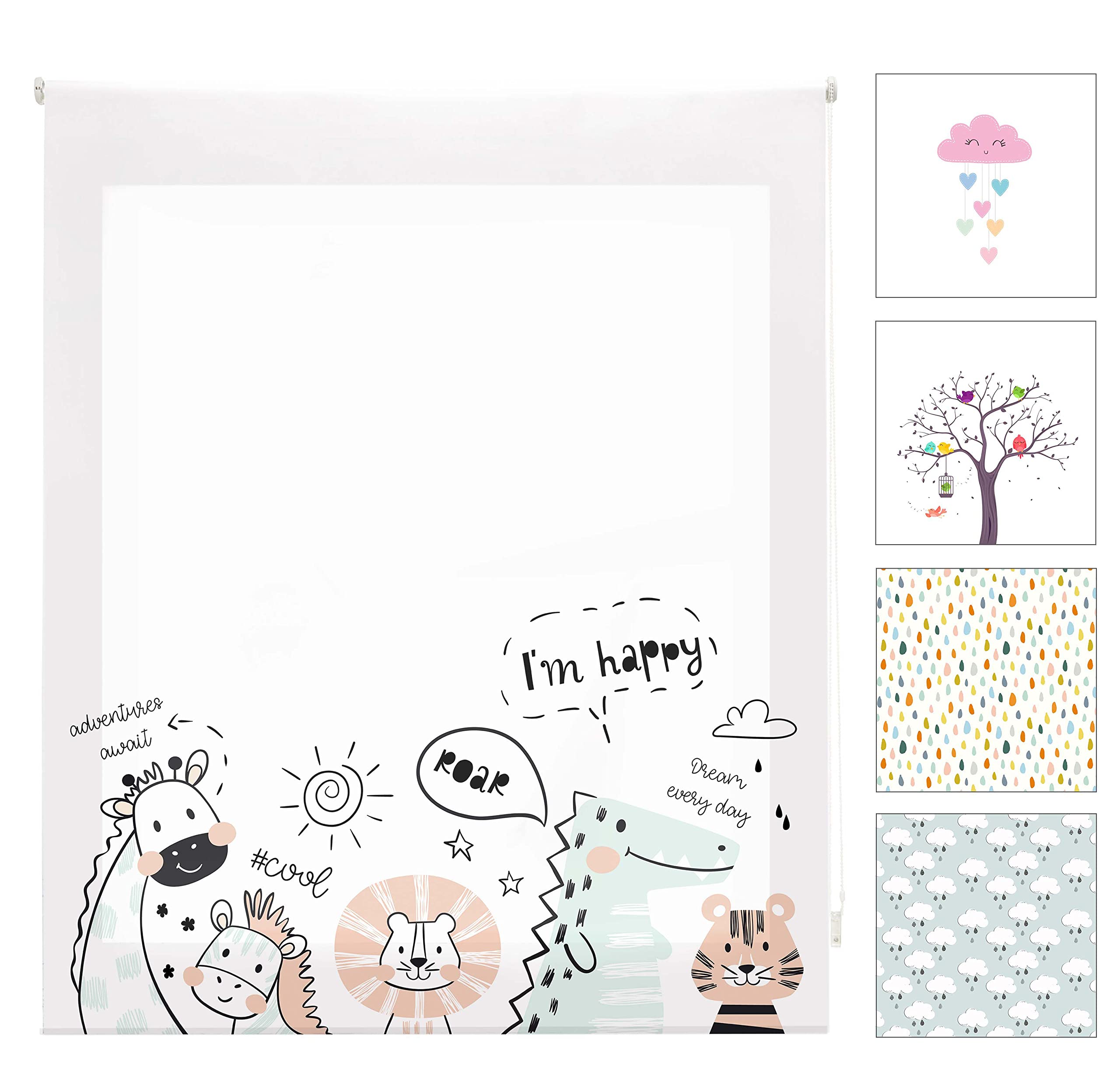 - Tenda decorativa per la cameretta dei bambini con disegni originali, unici e ad alta definizione. Consente l'ingresso parziale della luce, offrendo protezione dai raggi UV e isola freddo e calore. Meccanismo e catena in PVC di colore bianco.