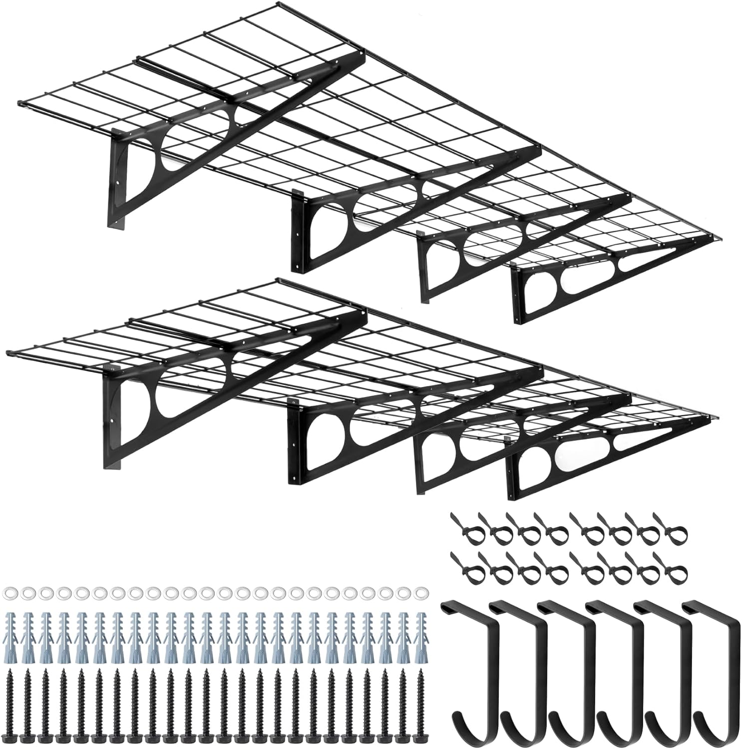- Pacchetto incluso: 2Pack 2x6ft scaffale garage con ganci, tra cui 8 x 1 * scaffali da 3 pollici 8 staffe, 6 ganci, fibbia da 8 * 15 cm con velcro (la fibbia impedisce che la staffe cadda o si pieghe), 1 piastra guida di montaggio, 1 livello di bolla (aiuta a ottenere una posizione orizzontale perfetta), 1x modello di installazione (utile per i fori di installazione).24 viti esagonali, 24 tubi di espansione in plastica. Tutto l'hardware è stato sottoposto a rigorosi test