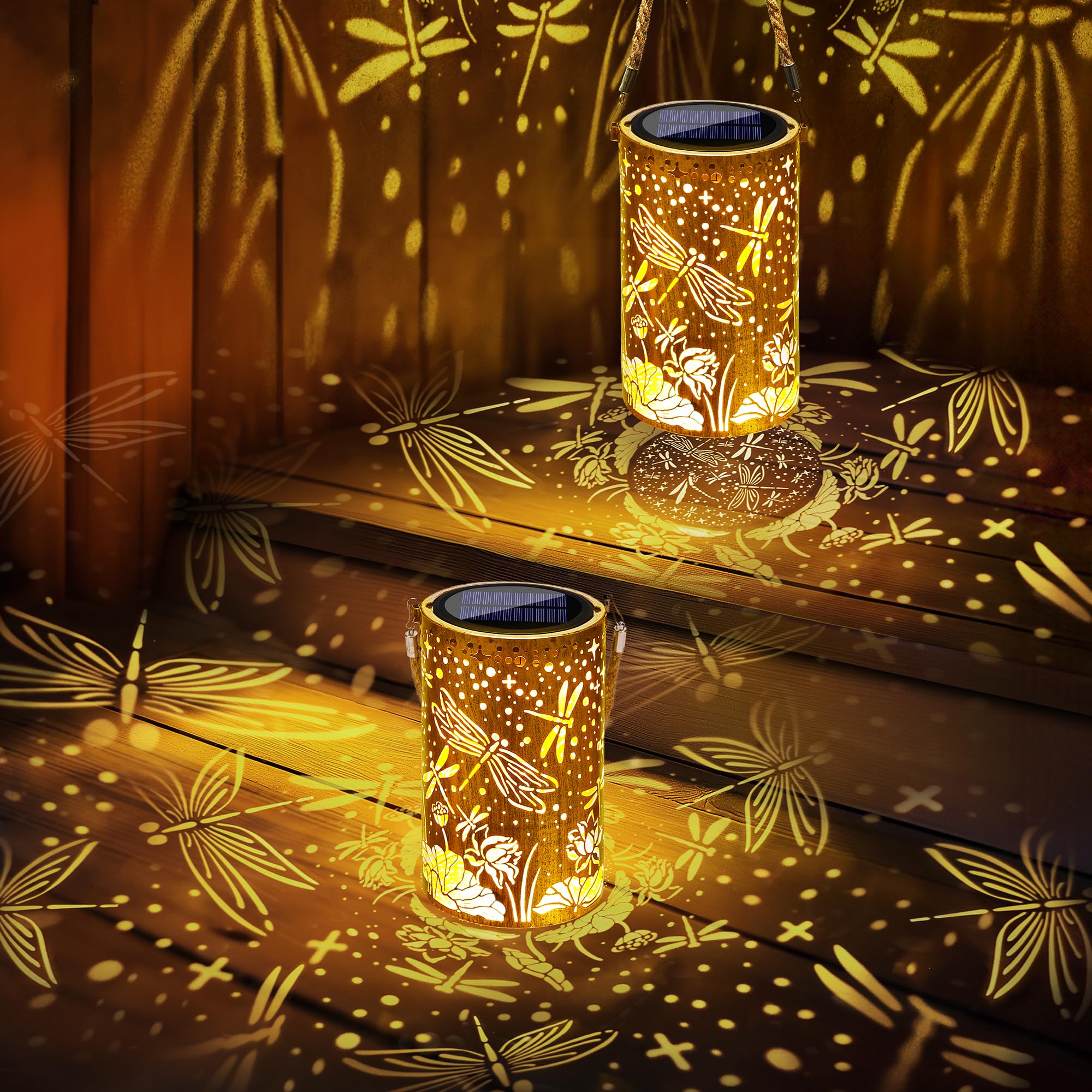 - Design elegante: le lanterne solari per esterni convincono grazie ai processi di scavatura in filigrana con motivo a libellule, che si combinano armoniosamente con ornamenti floreali. Al crepuscolo, i contorni nobili svolgono il loro pieno effetto e proiettano un gioco di luci unico sulle superfici del pavimento. Questa lanterna da giardino a energia solare crea un'ambiance di romanticismo confortevole e vivace eleganza