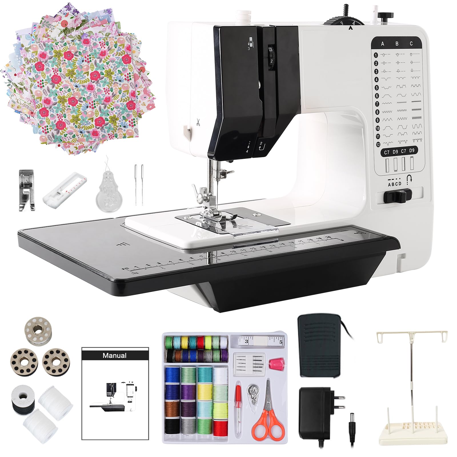 - Forte Capacità di Cucitura: 12 punti integrati con 3 impostazioni di densità consentono 36 combinazioni. Cuciture 6 strati di denim ordinario, vestiti trasformati/tessuti. Piedini intercambiabili per funzioni speciali; lo slot per cucire semplifica la cucitura di gambe/polsini, tutto in uno per una vasta gamma di progetti.