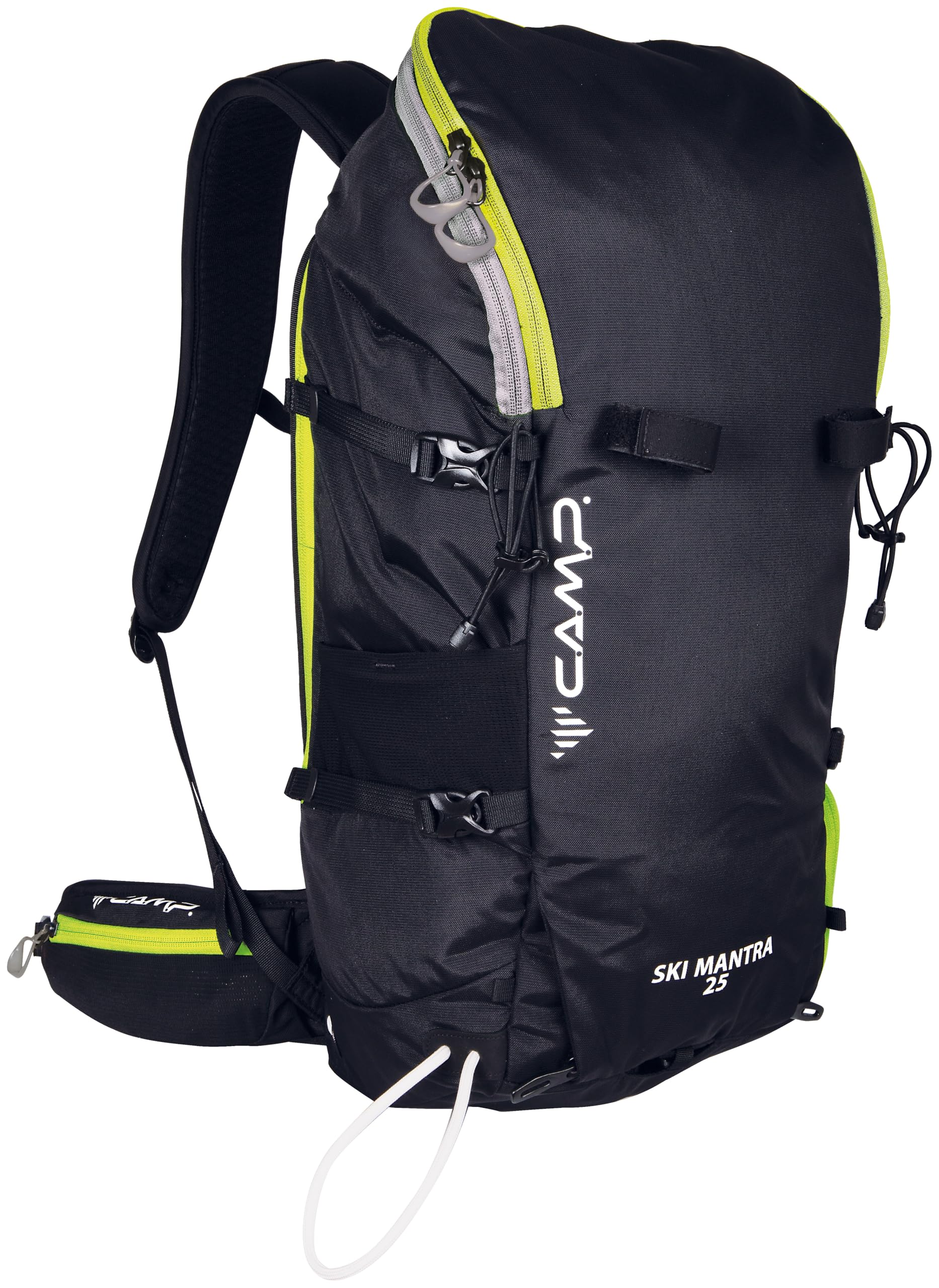 - Doppia possibilità di scelta della posizione dell’asola inferiore del porta sci, regolabile a seconda del carico dello zaino. Porta sci laterali con fettucce regolabili