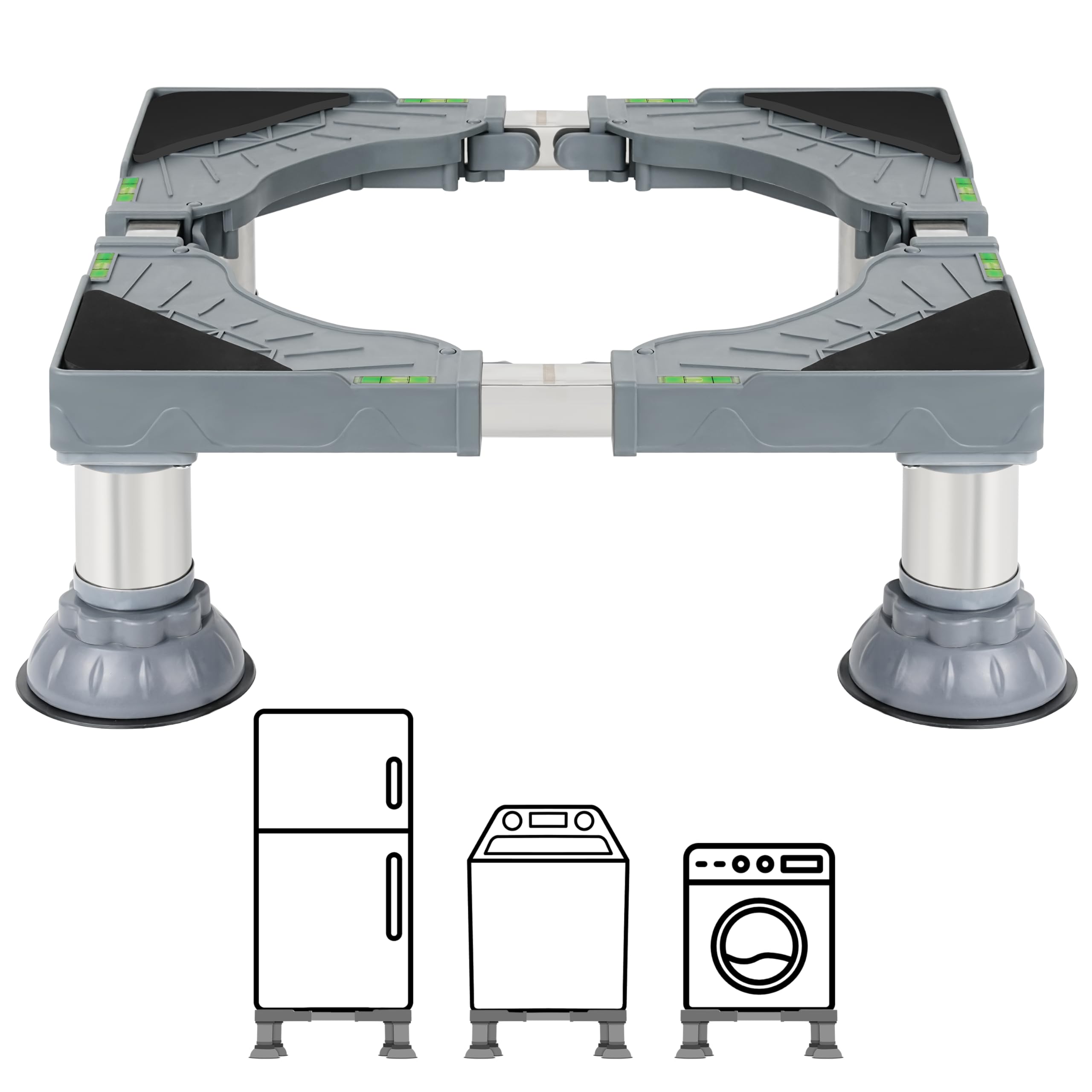 - DIMENSIONI PERSONALIZZABILI - Il rialzo per lavatrice ha un'altezza regolabile di 16-19 cm, una larghezza di 40-65 cm e una lunghezza di 40-65 cm; ogni pannello è dotato di una livella a bolla d'aria per garantire un allineamento perfetto