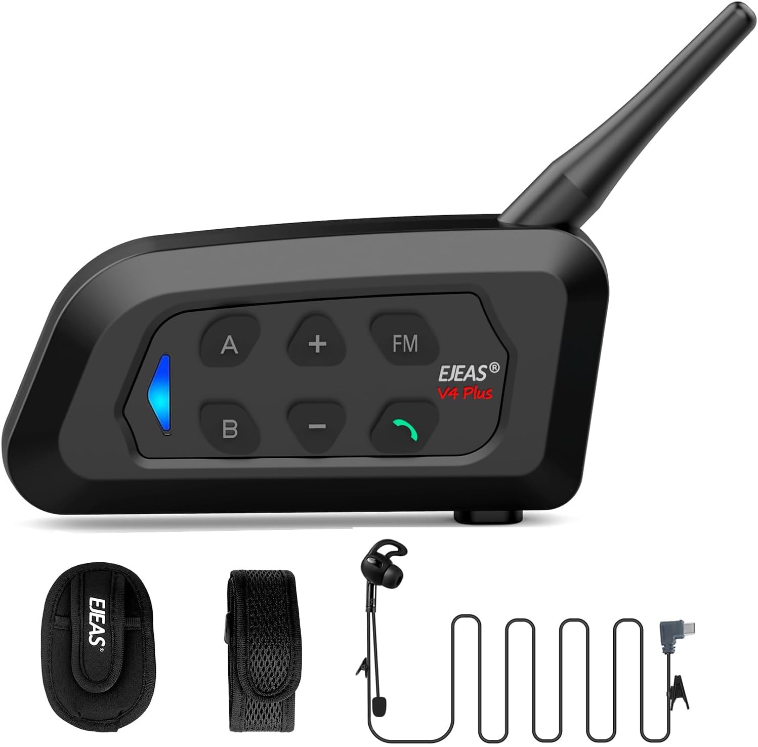 - Interfono di Gruppo Aggiornato per 4 persone: V4C Plus utilizza un chip Qualcomm Bluetooth 5.1 ottimizzato, in grado di ottenere un accoppiamento rapido e di mantenere un basso consumo energetico. Supporta da 2 a 4 persone che parlano contemporaneamente. La distanza massima tra ogni macchina è di 500 metri e la distanza totale di un gruppo di 4 persone può raggiungere circa 1500 metri.
