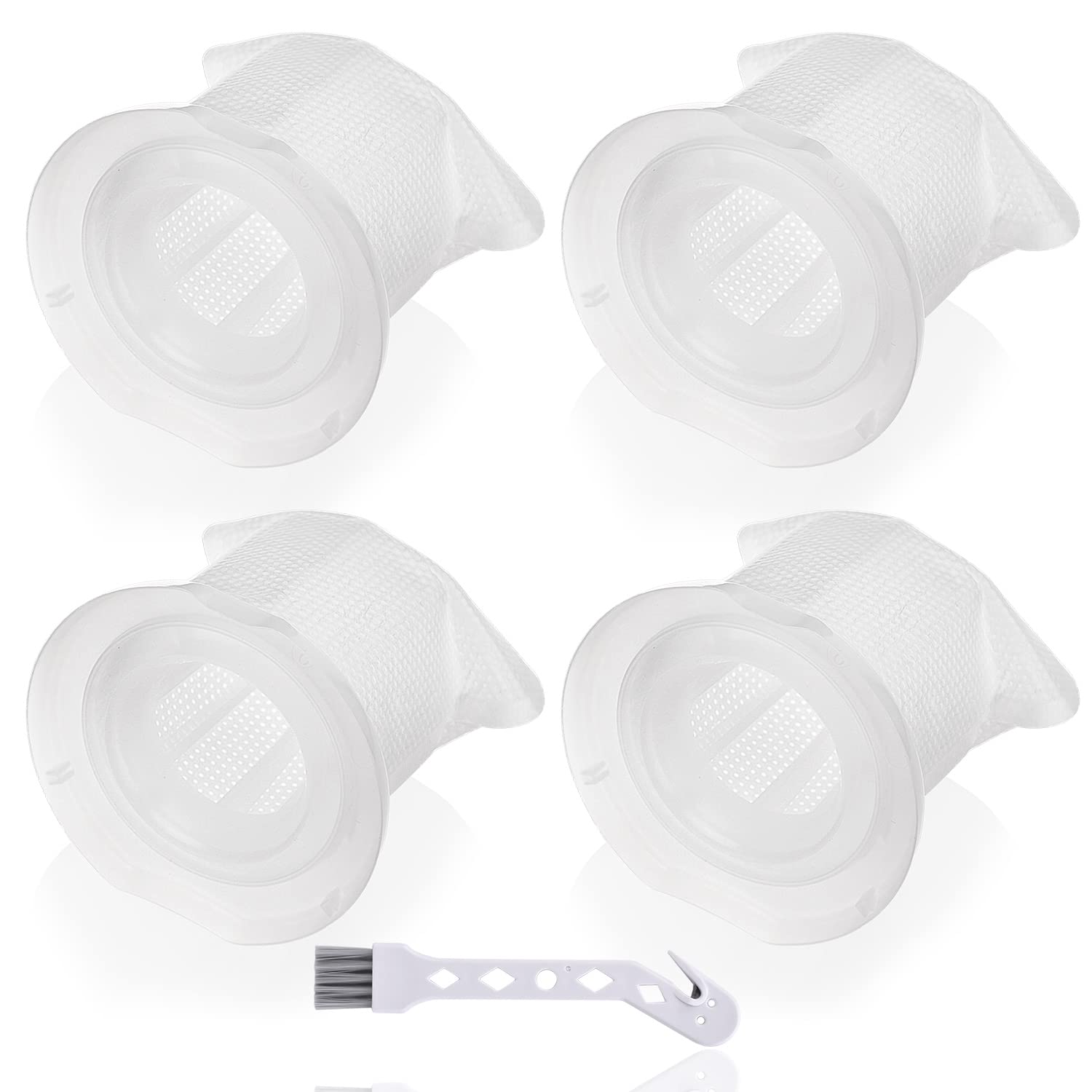 - Il set include un totale di 4 filtri di ricambio per l'aspirapolvere a batteria Vorwerk VC 100, insieme a un utensile per la pulizia.