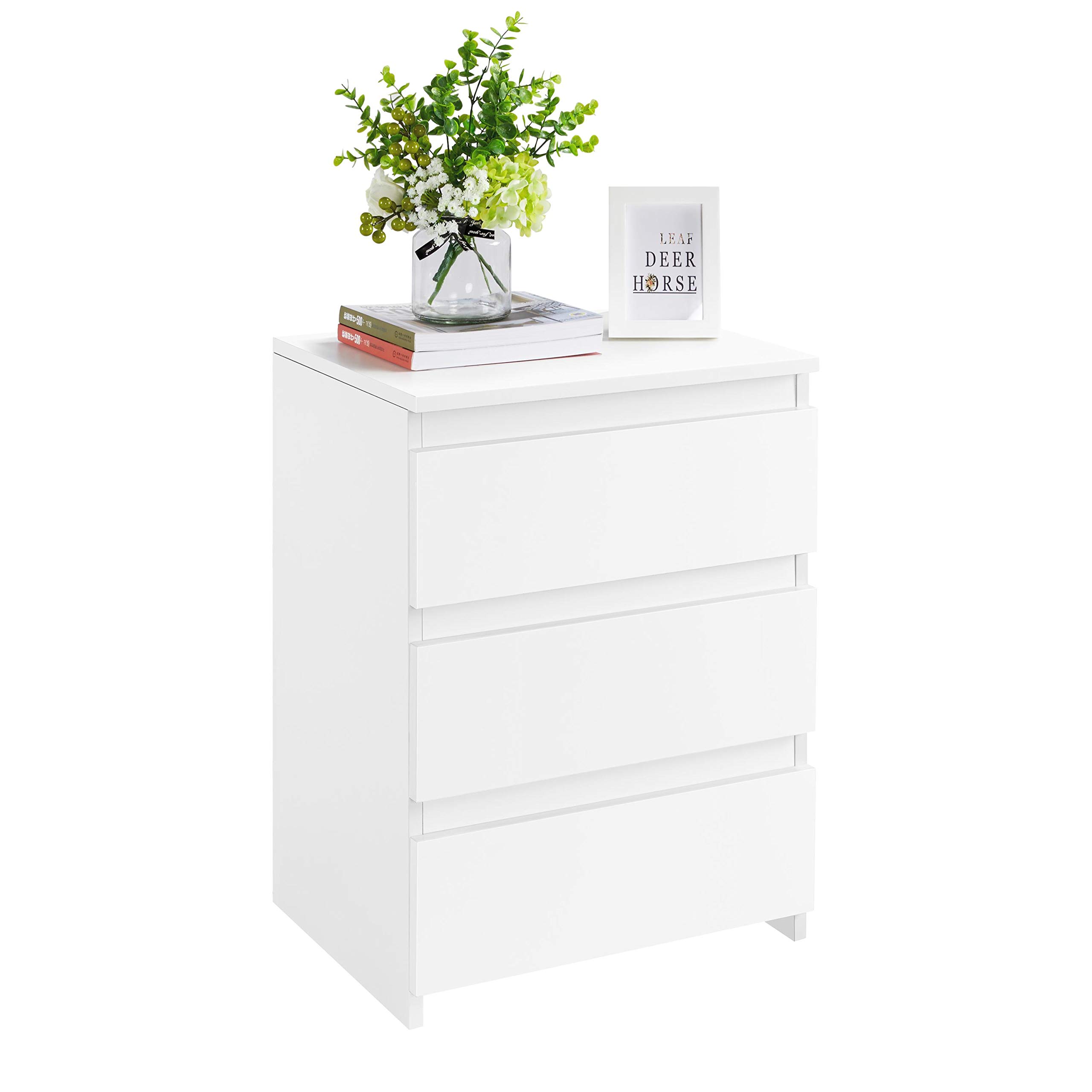 Yaheetech Comodino Camera da Letto con 3 Cassetti, Bianco