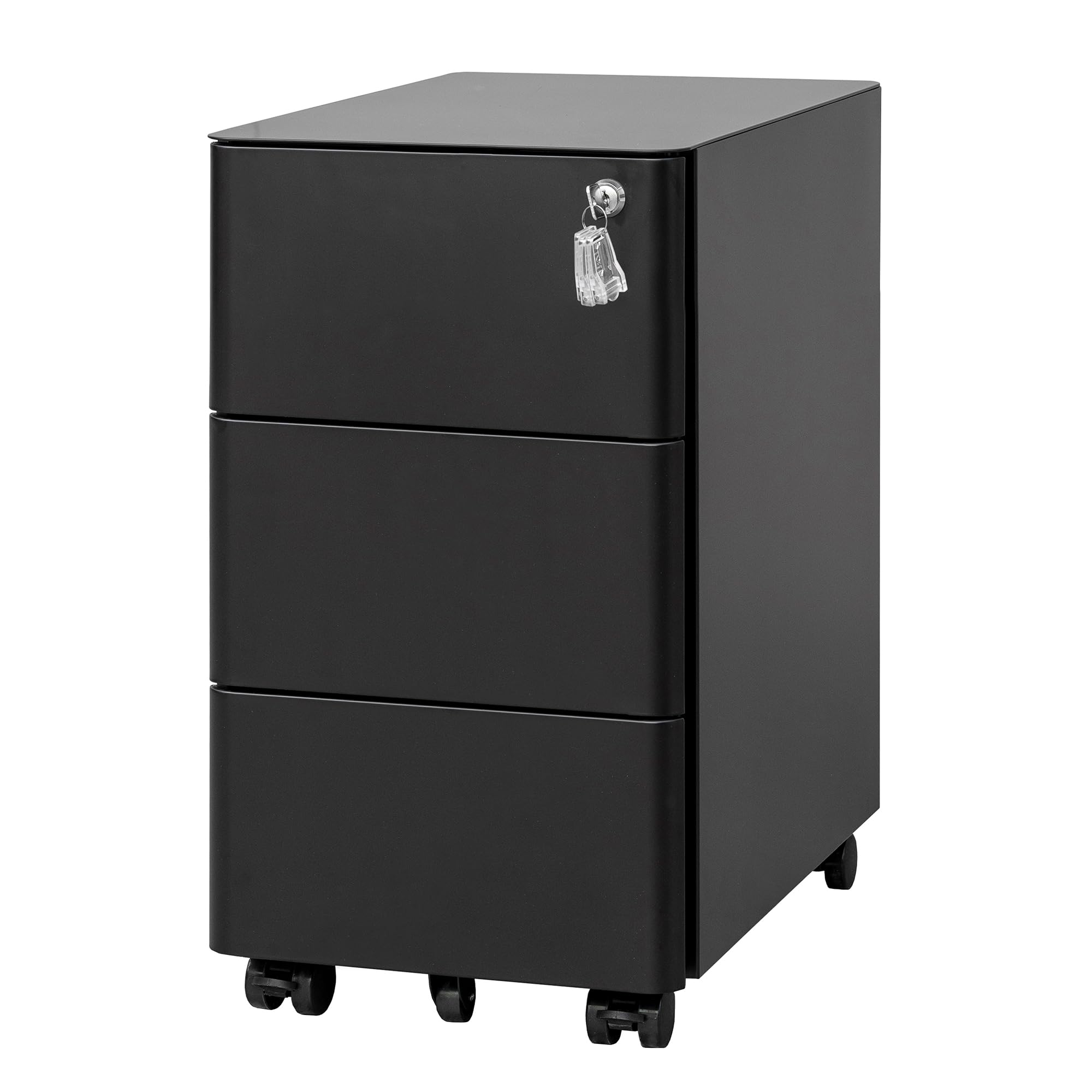 - [LVSTEEL Cassettiera da Ufficio]:Questa cassettiera da ufficio dispone di tre cassetti: la cassetta superiore è dotata di una palletta scorrente, ideale per ospitare penne, materiali ufficio e altri oggetti di piccole dimensioni. Inoltre, la cassettiera è dotata di corse con rulli a sfera che funzionano in modo fluido: basta tirare leggermente il lato per aprire le cassette in maniera scorrevole.