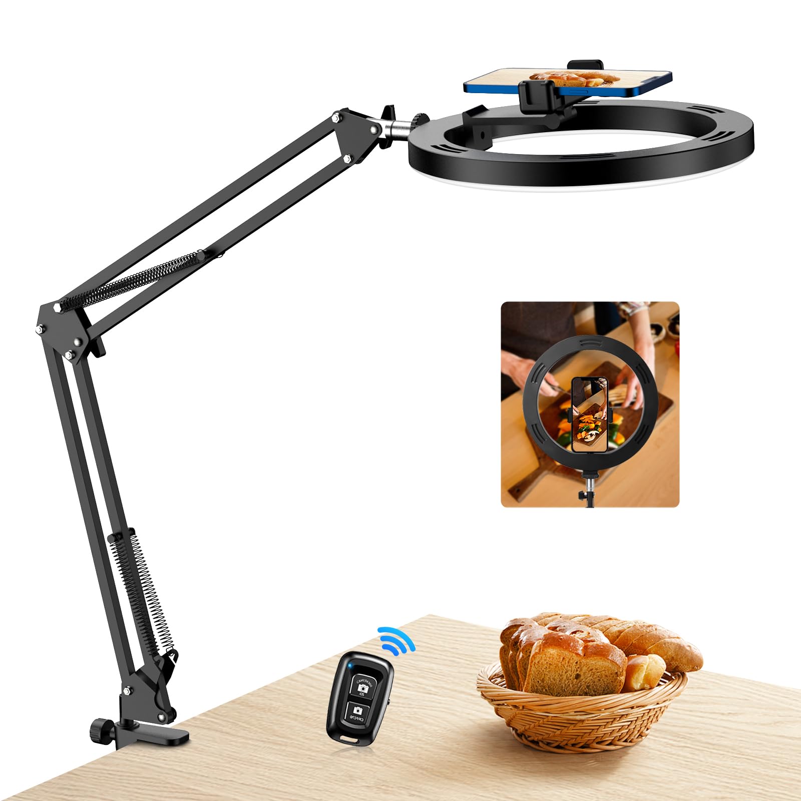 - La ring light Evershop, completa di supporto e porta cellulare, offre angolazioni flessibili e versatili grazie a un braccio da 76 cm (30"), ideale per riprese dall'alto, video di cucina, fotografia, trucco, selfie, streaming e videoconferenze.