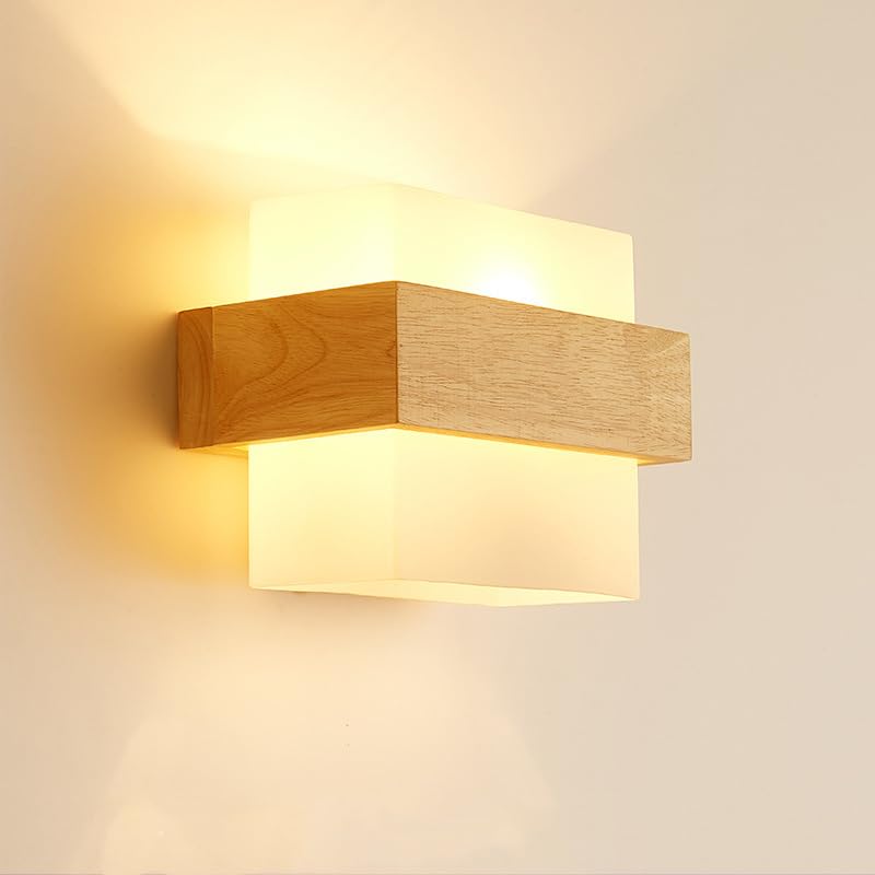 - Questa applique moderna si distingue per il suo design unico, caratterizzato da una base in legno massiccio con venature naturali e un paralume in vetro altamente traslucido che diffonde una luce morbida, creando un'atmosfera calda e confortevole in ogni ambiente.