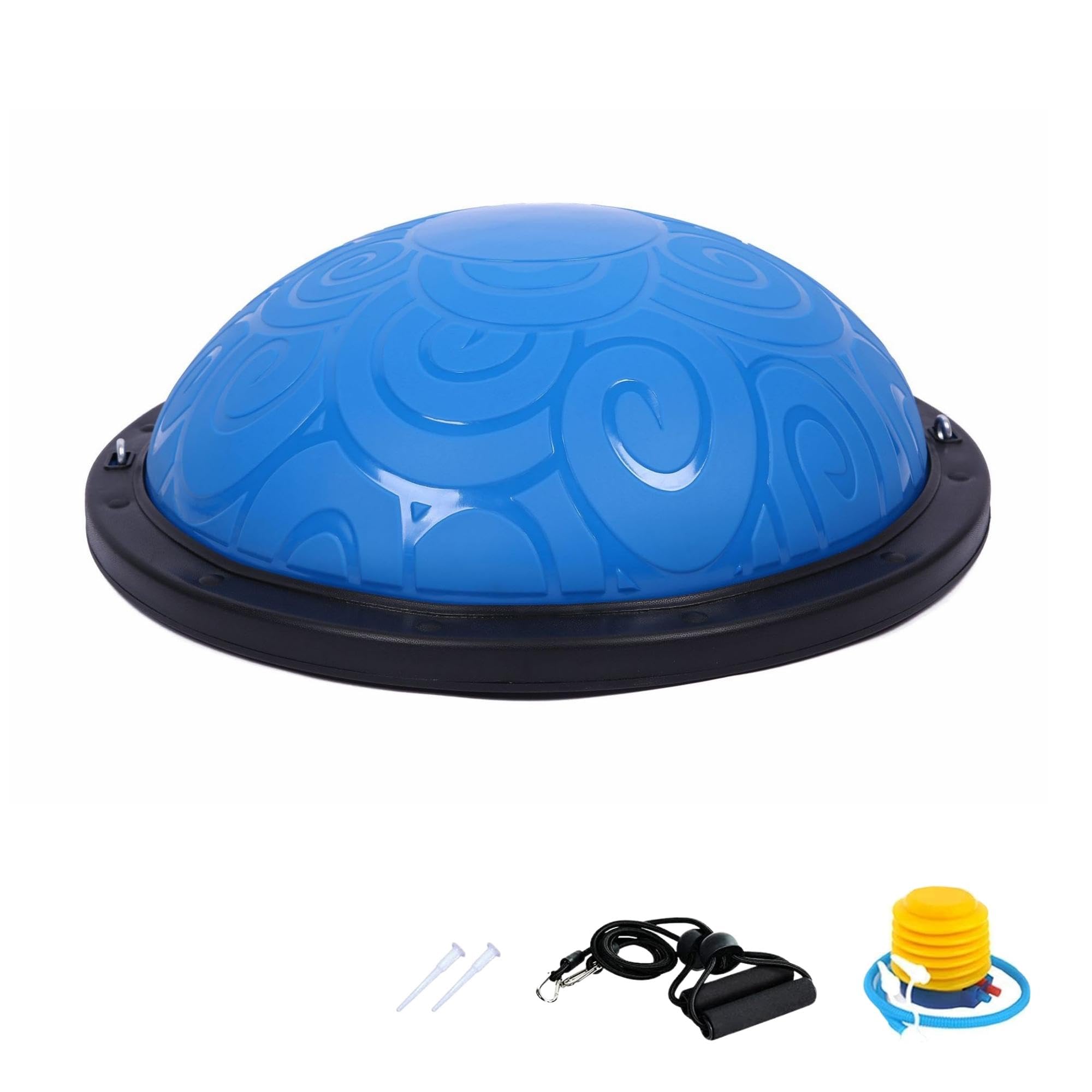 - CONTENUTO DELLA CONFEZIONE: Include una pompa a pedale per gonfiare completamente la palla, due fasce di resistenza e due tappi.