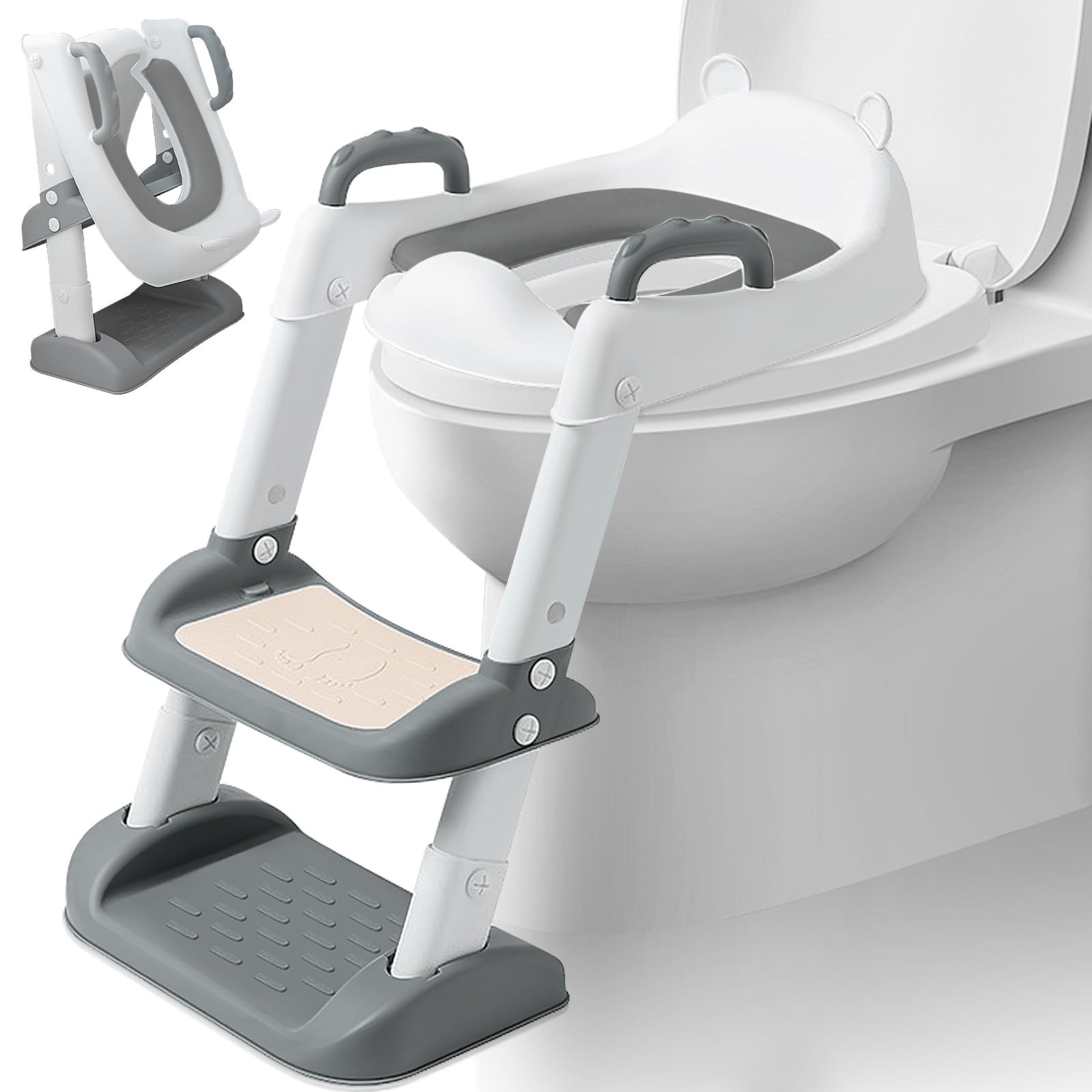 Riduttore WC Bambini Pieghevole 2 in 1, Grigio