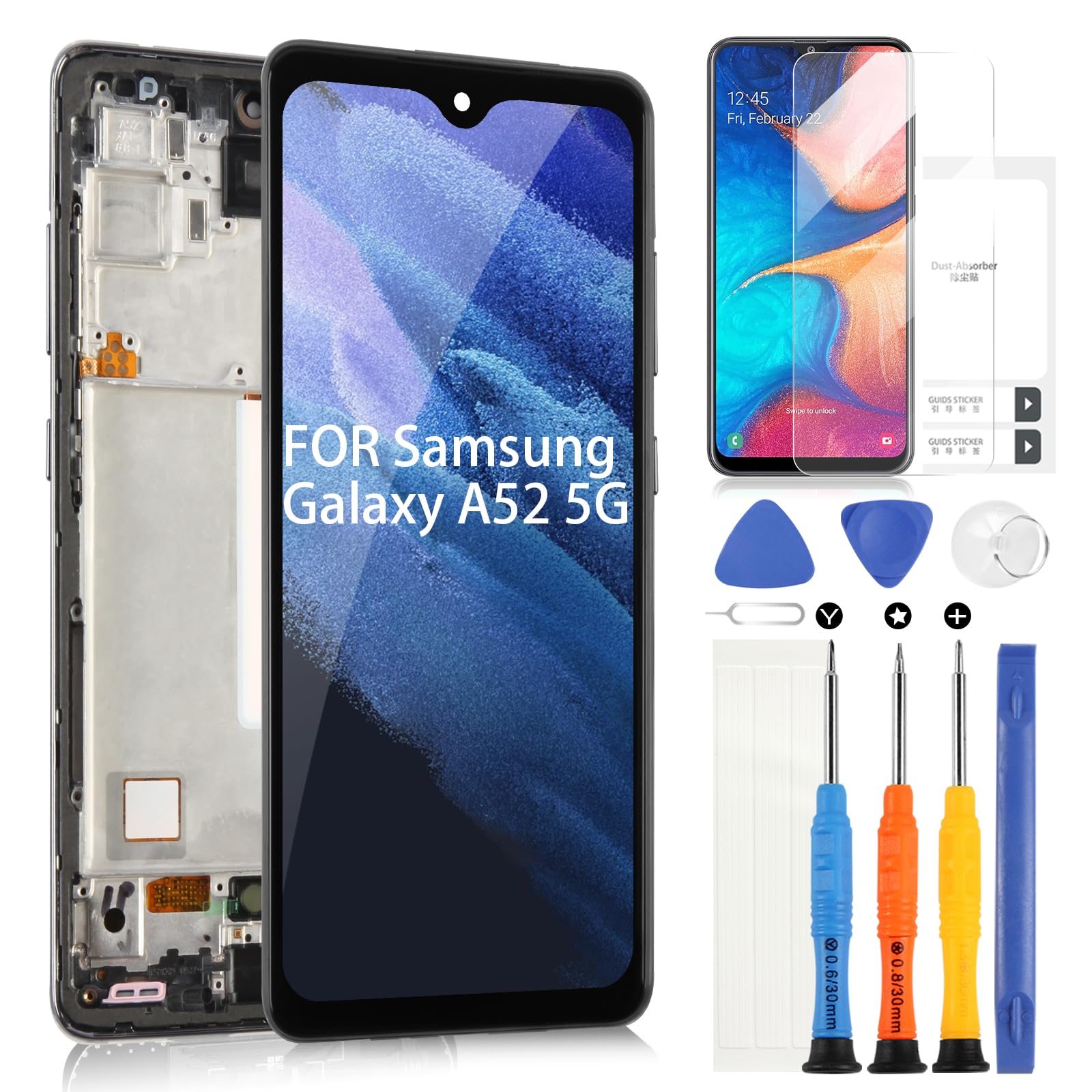 - La confezione include 1 schermo per Samsung Galaxy A52 5G, 1 set di strumenti di riparazione e 1 pellicola protettiva.