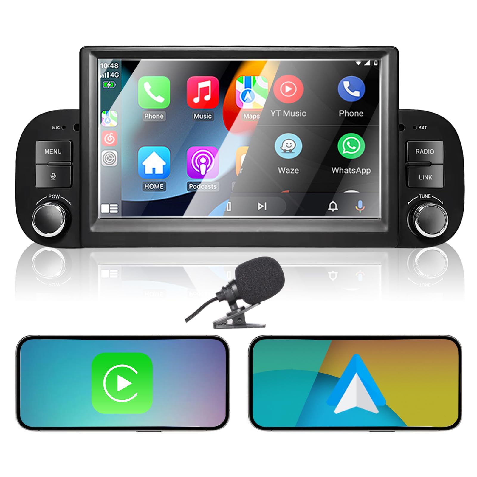 - Goditi la comodità di Apple CarPlay e Android Auto, entrambi disponibili in modalità wireless e cablata. Il sistema si connette e disconnette automaticamente al salire e scendere dall'auto, migliorando l'esperienza di guida con navigazione online, controllo vocale, musica e messaggi.