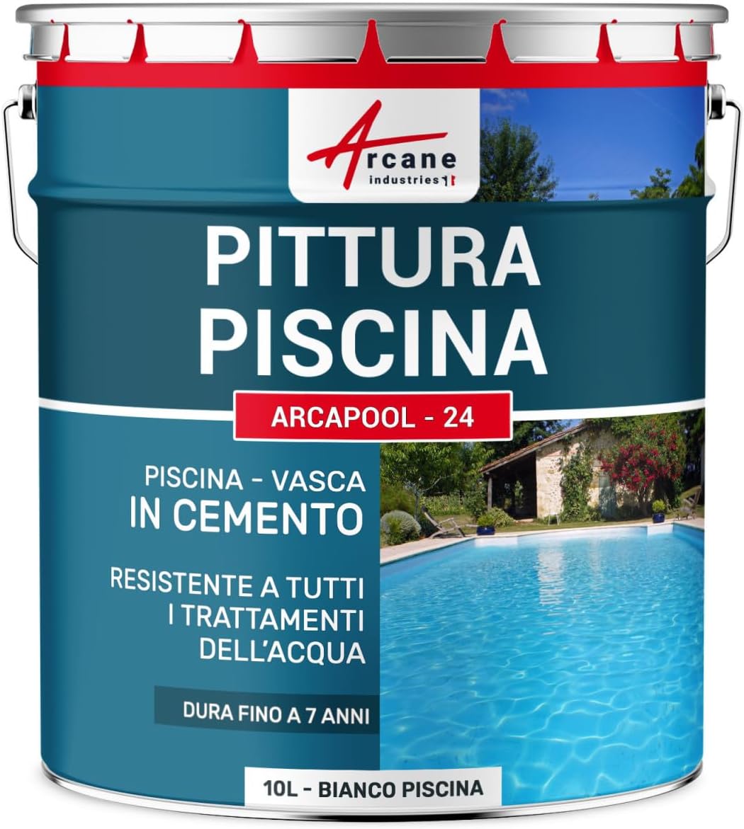 - La vernice per piscine in cemento e vasche è una pittura impermeabilizzante e decorativa per piscine e vasche. Disponibile in molti colori: grigio, nero, verde, giallo, blu, bianco. ARCAPOOL - 24 è una pittura idrorepellente per piscine e rappresenta la soluzione migliore in termini di prezzo per rinnovare la vostra vasca. Resistente, compatibile con il trattamento al sale, applicabile su silico-marmoreo.