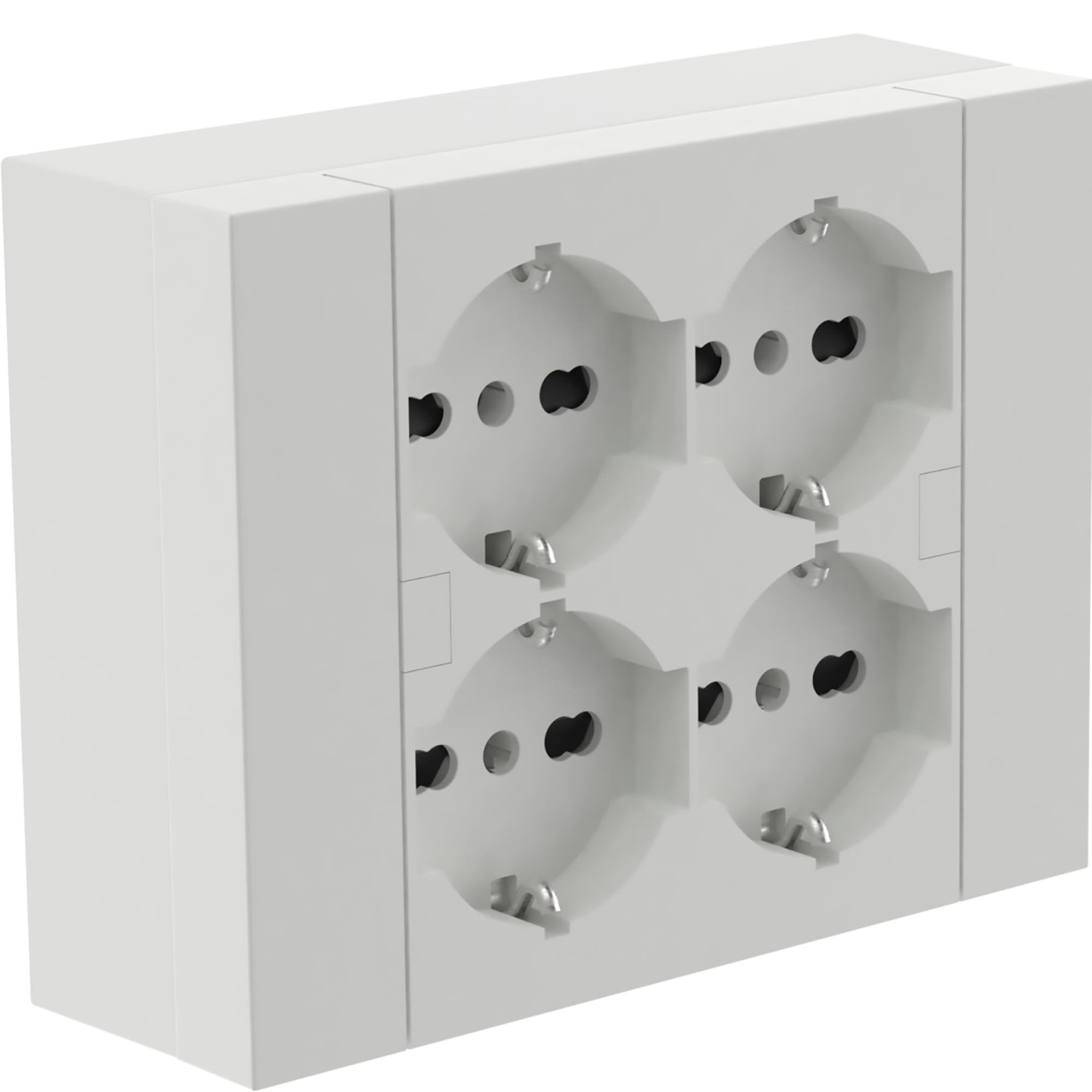 - Questa multipresa da parete Quadra offre 4 posti universali P40 (Schuko + 10/16A), compatibile con tutte le scatole da incasso a 3 posti, sia per muratura che per cartongesso.