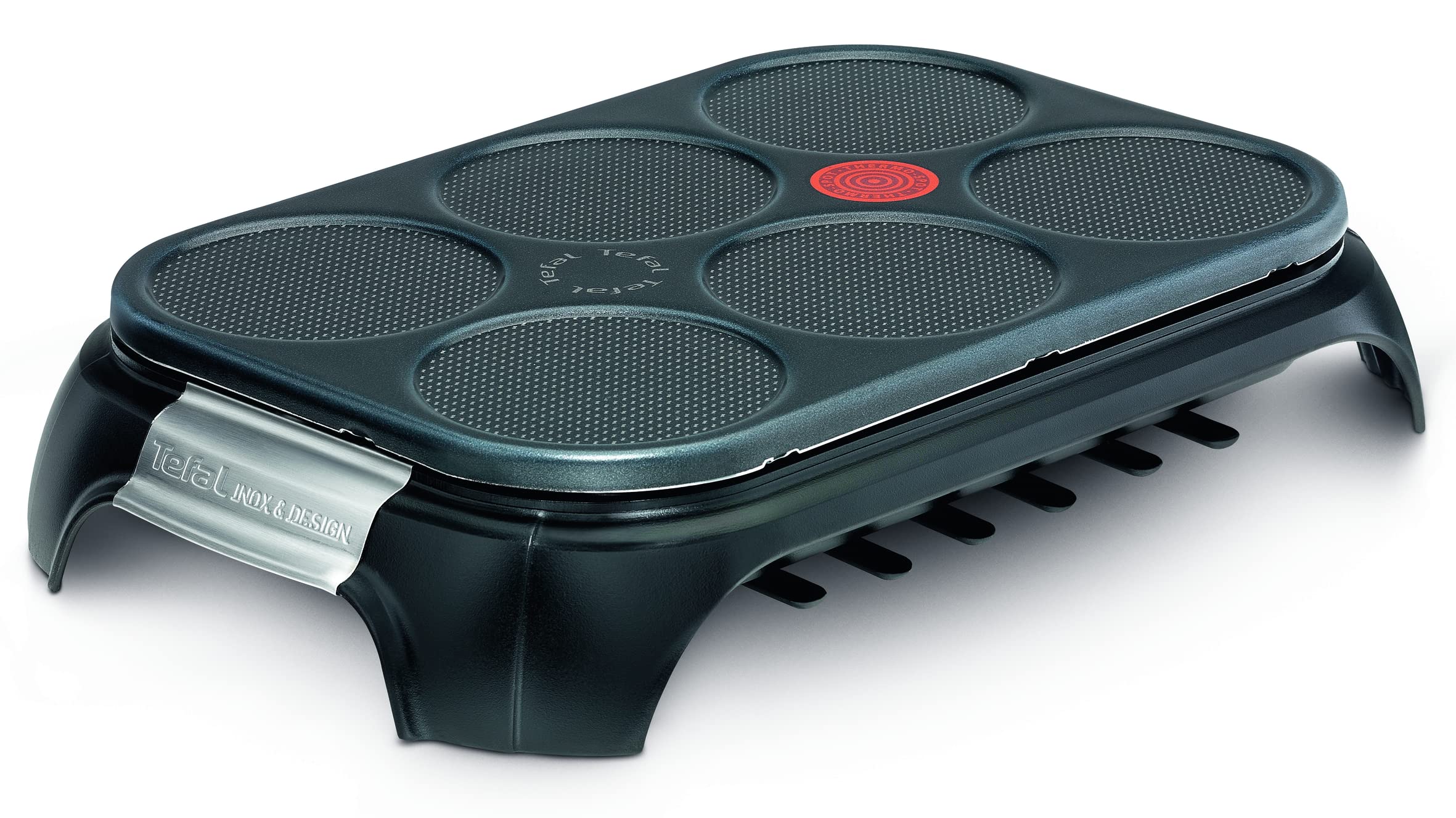 - Crepera de 850 W con diseño moderno con capacidad para 6 personas