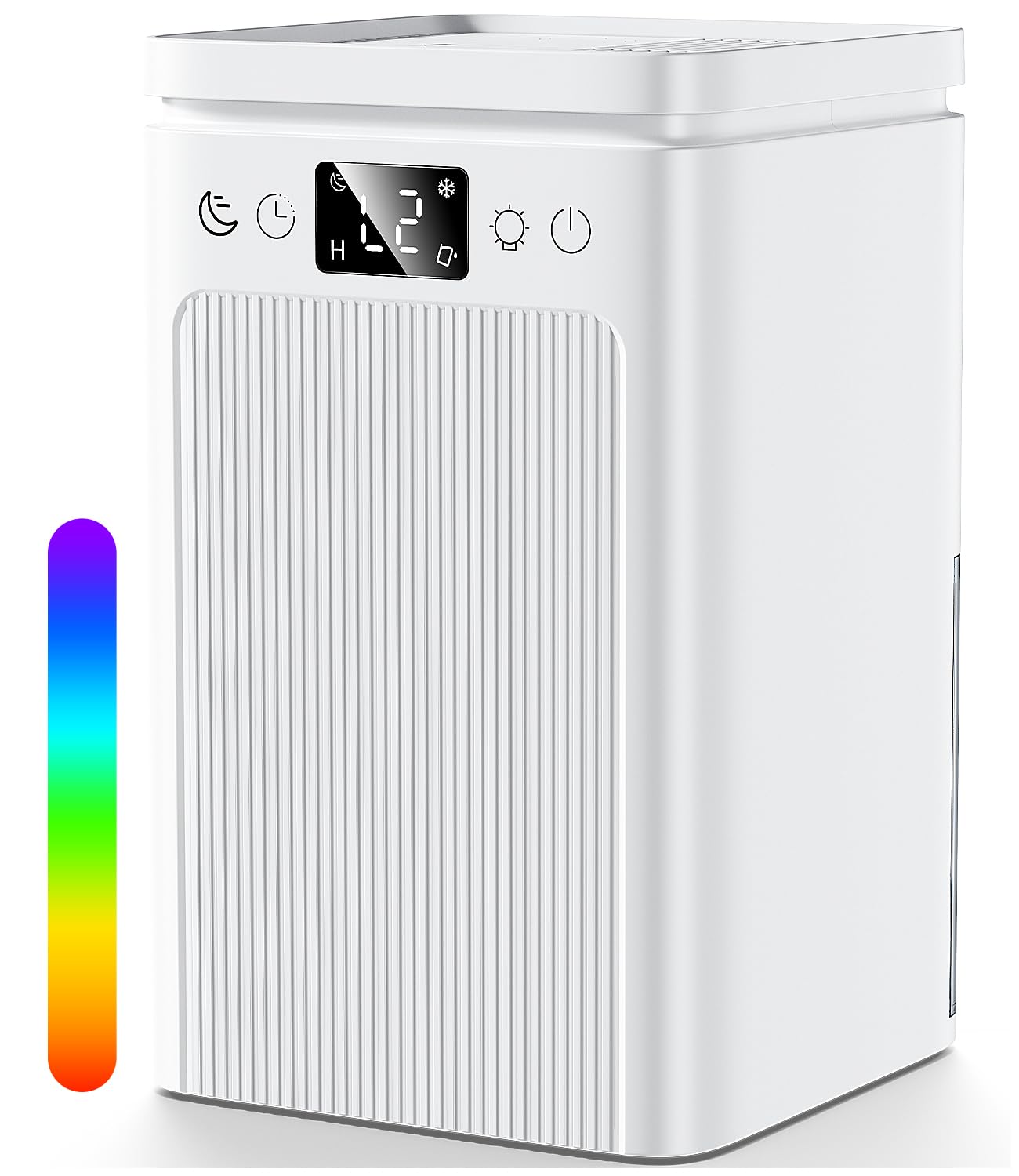 - 6 modalità di tempo e luci LED colorate: il deumidificatore da bagno ha una funzione timer (2h/4h/6h/8h/10h/12h), che consente di regolare il tempo di deumidificazione in base alle proprie esigenze, contribuendo a evitare sprechi di energia. Inoltre, il deumidificatore domestico è dotato di una luce LED morbida e colorata che crea un'atmosfera calda e rilassante di notte.