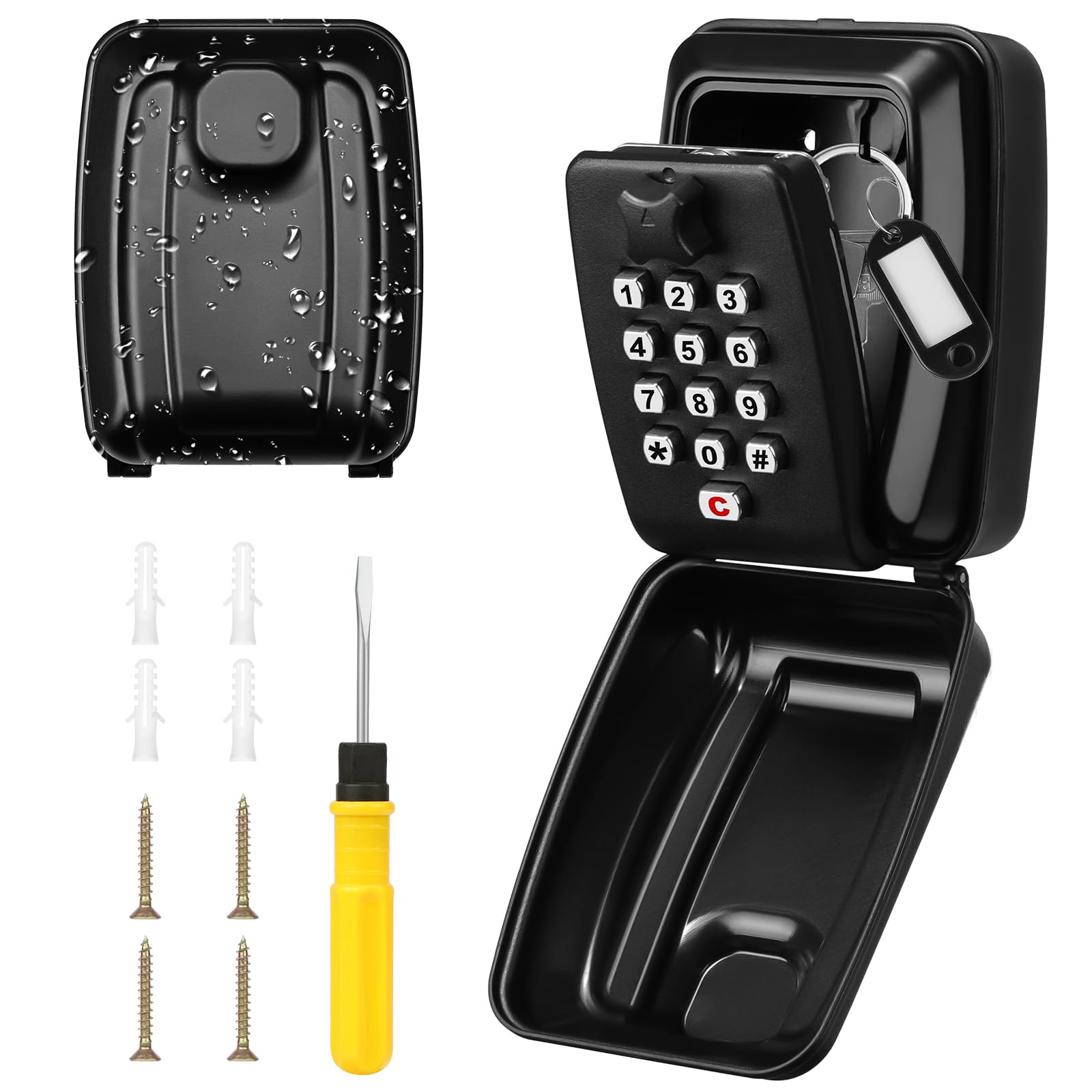 - Questa cassaforte di grandi dimensioni può contenere comodamente fino a cinque chiavi di casa o dell'auto, oltre a offrire spazio aggiuntivo per carte di credito, denaro contante o altri piccoli oggetti, risultando pratica per ospiti o come riserva in caso di emergenza.