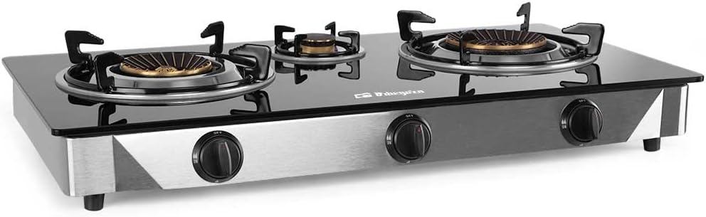 - Questo fornello a gas è dotato di una struttura in acciaio inox e una superficie in vetro temperato.