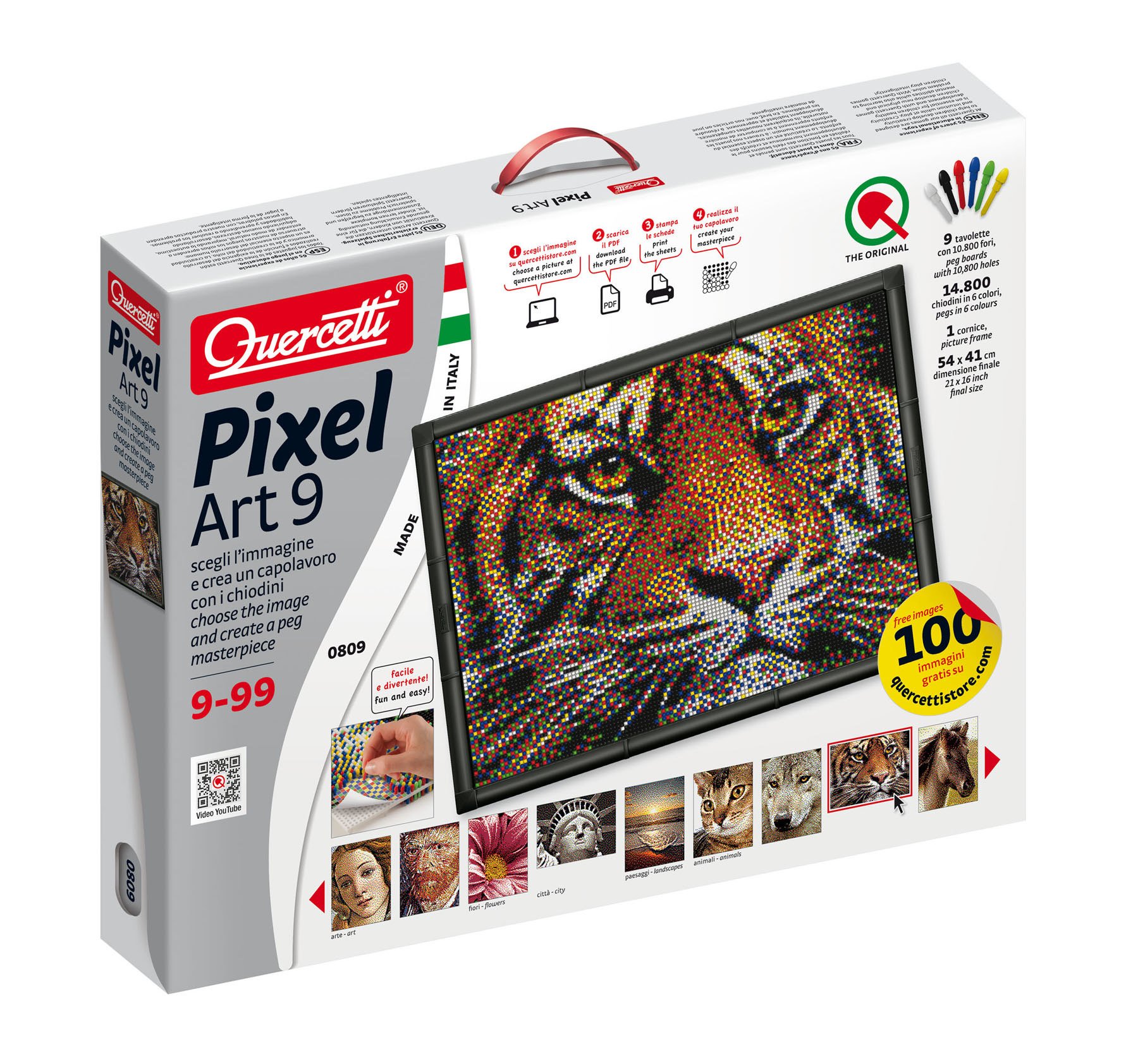- Pixel Art è una rivisitazione moderna e accessibile dei classici chiodini Quercetti, adatta a tutte le età.
