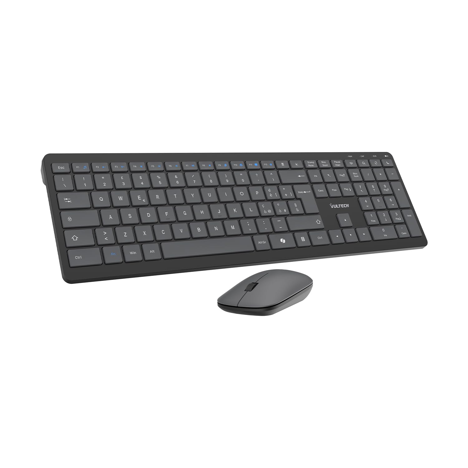 Vultech KM-851W - Kit Tastiera e Mouse Wireless, Nero