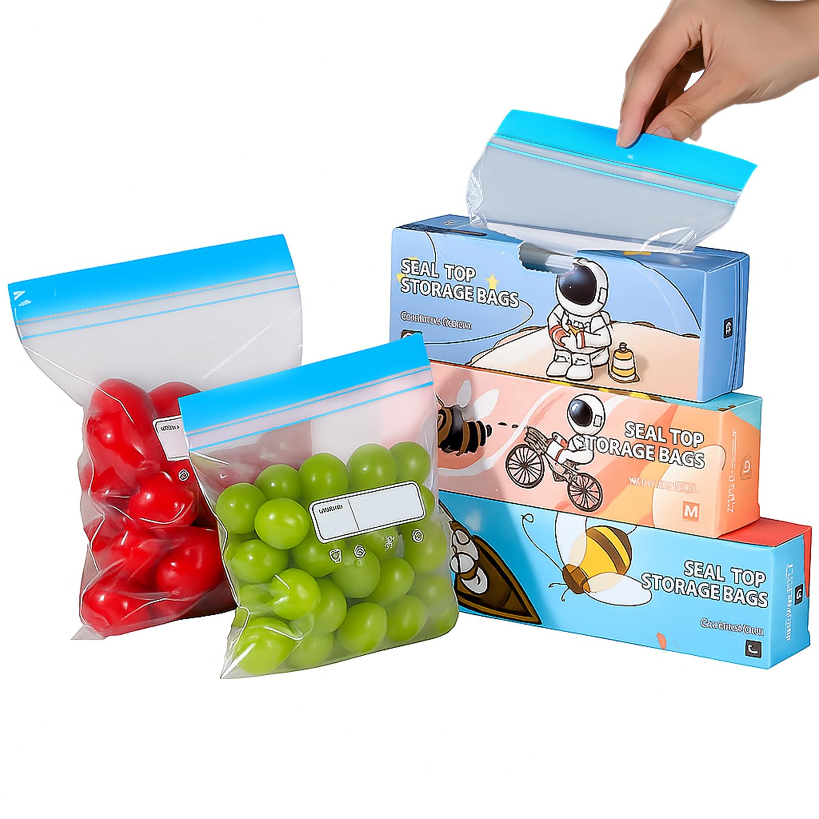- Dotati di una doppia cerniera per una chiusura e apertura agevoli, i sacchetti includono anche un'area scrivibile al centro, utile per annotare la data e il contenuto.