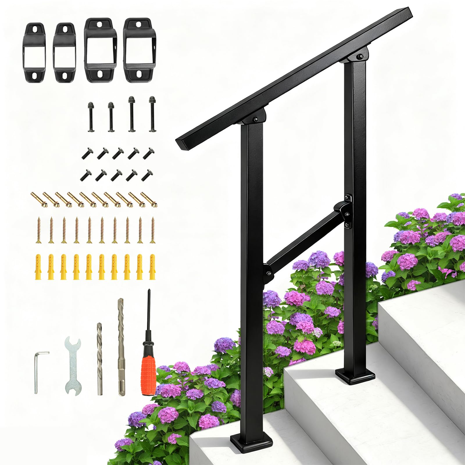 - Presa sicura e confortevole: il corrimano curvo offre una presa sicura, mentre il rivestimento a polvere resistente alle intemperie previene ruggine, graffi e sbiadimento. Ideale in caso di pioggia o ghiaccio, garantisce sicurezza tutto l'anno con una manutenzione minima.