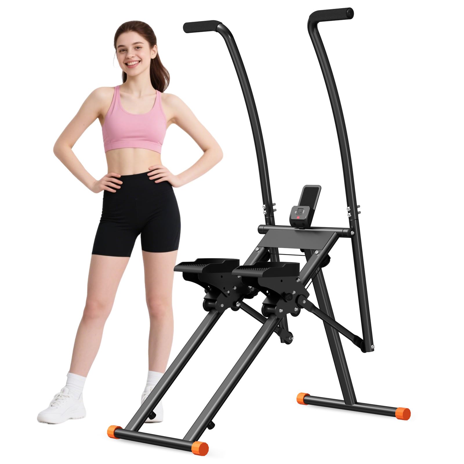 - 【Monitor intelligente a LED: monitora i progressi come un professionista】: rimani motivato con statistiche in tempo reale! Il display LED integrato mostra le calorie bruciate, i passi effettuati, il tempo di allenamento e persino il conteggio delle ripetizioni, trasformando il tuo vertical climber in uno stepper intelligente per gli allenamenti. Stabilisci obiettivi, raggiungili e osserva il tuo percorso di fitness in un colpo d'occhio.