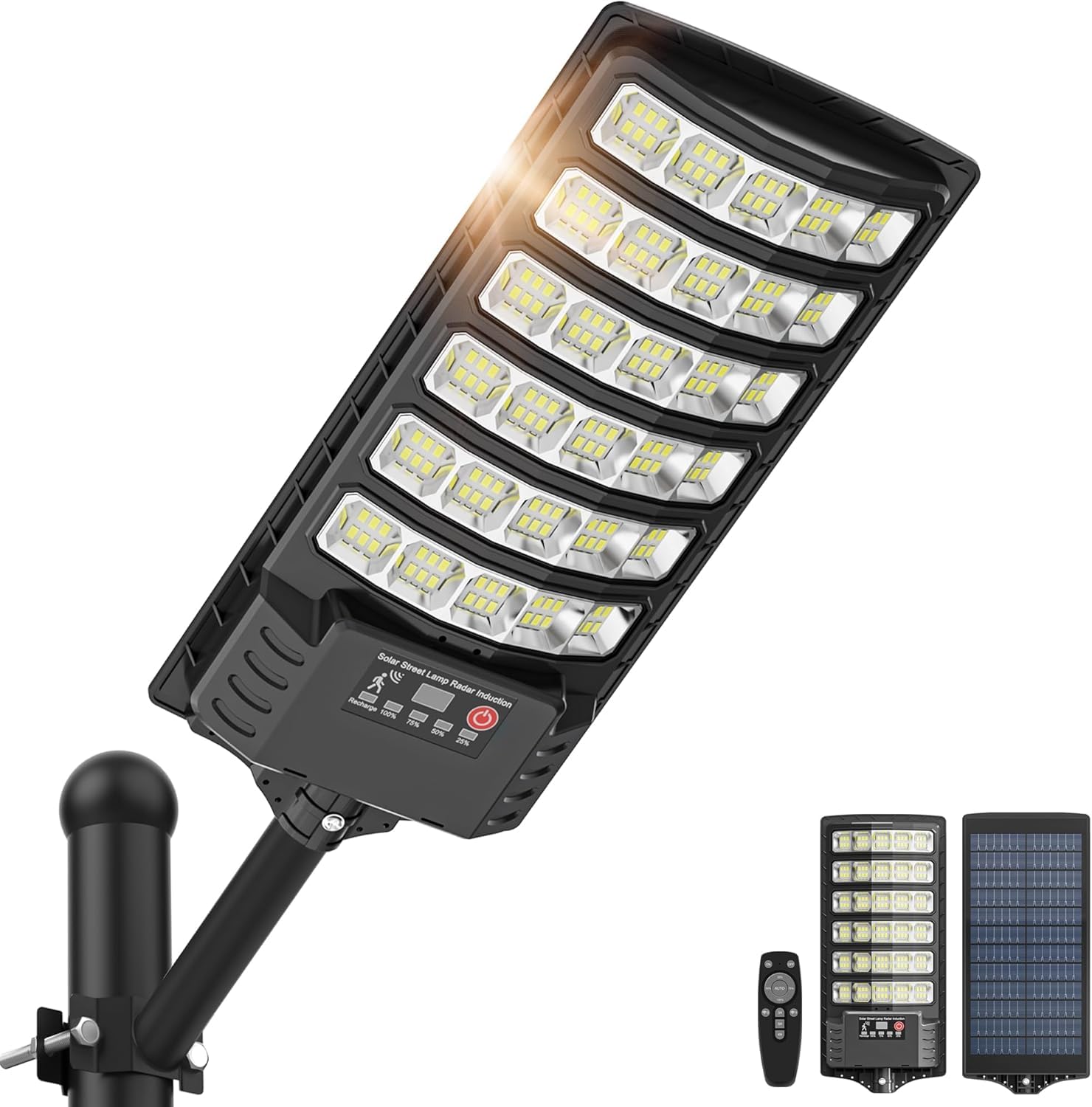 - 【0 elettricità e maggiore durata della batteria】supera le luci solari standard con pannello solare da 35 x 15,5 cm (efficienza del 37%) e una maggiore capacità della batteria di 6000 mAh. Completamente carica in 6-8 ore alla luce del sole, fornisce 10-12 ore di illuminazione continua e si illumina automaticamente dal tramonto all'alba. A energia solare e 0 elettricità per illuminare il vostro parcheggio, vialetto, cortile e sentiero.