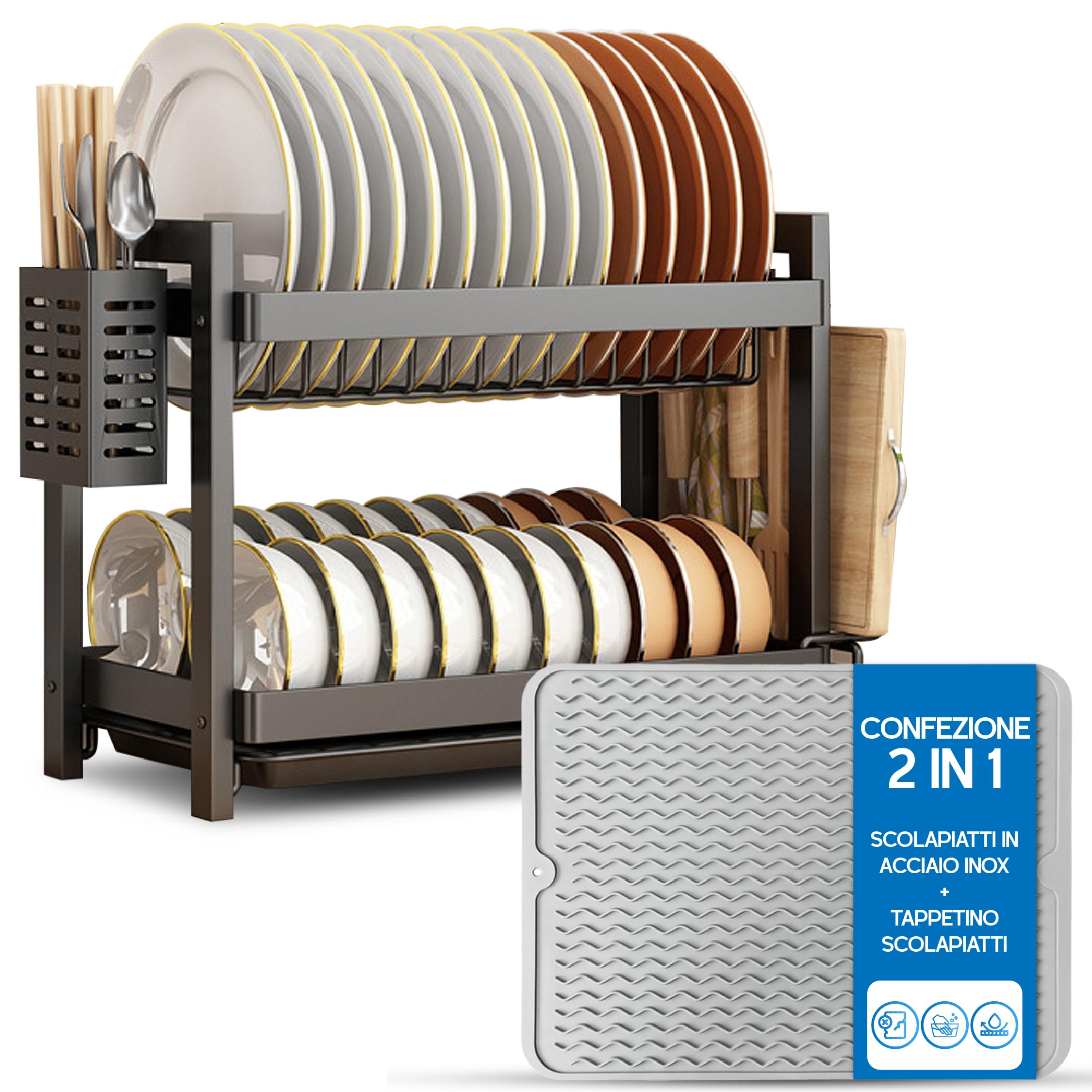 Scolapiatti da Appoggio a 2 Livelli con Tappetino