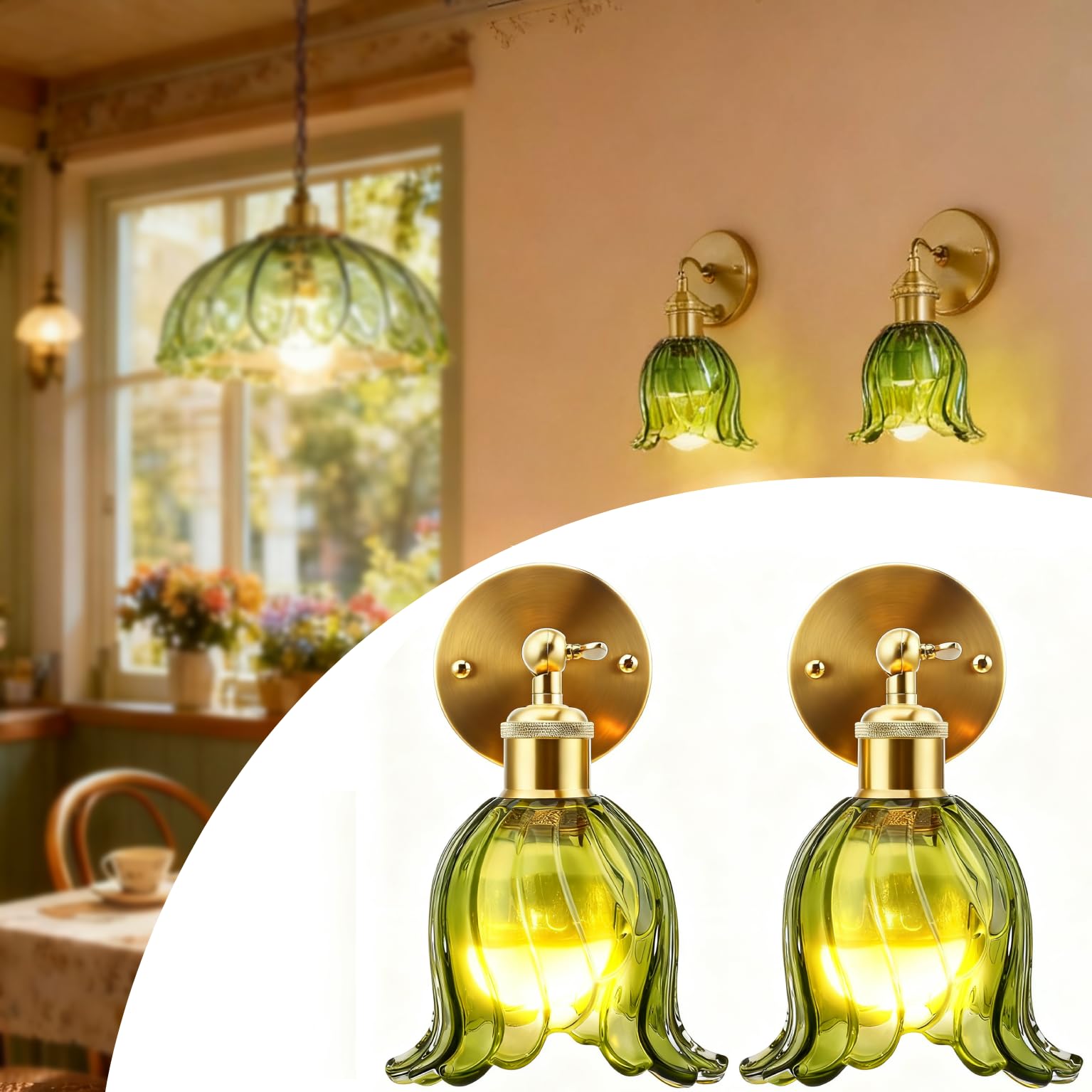 - Design elegante con vetro a tulipani verdi: la lampada da parete da bagno convince con metallo dorato e bulbo in vetro verde tulipano. Questa lampada da parete vintage modello interno è un elegante richiamo visivo per camera da letto o corridoio!