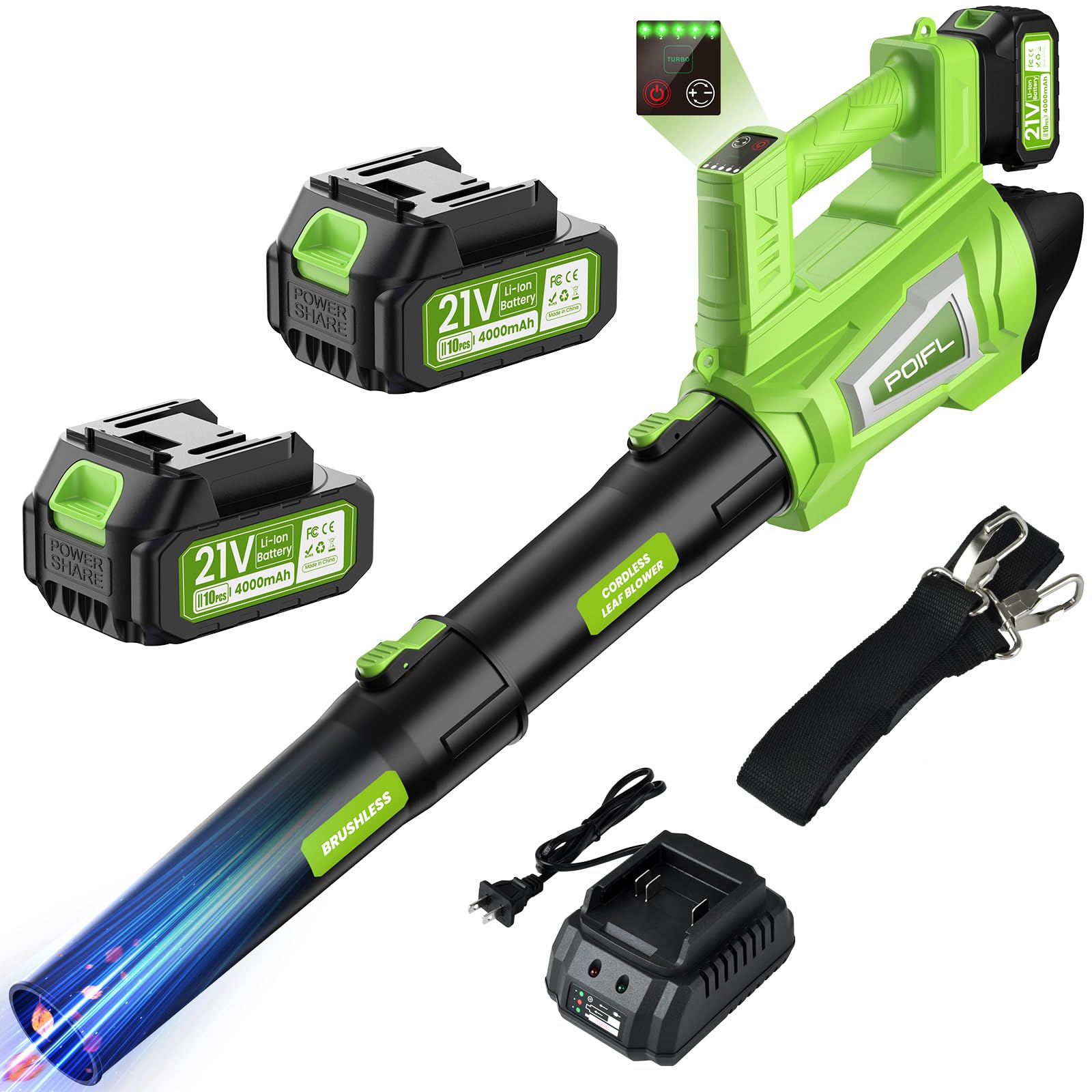 - Il soffiatore a batteria è equipaggiato con un motore brushless in rame puro, che assicura un funzionamento stabile, previene il surriscaldamento e offre prestazioni superiori con una maggiore durata rispetto ai modelli con motore a spazzole, garantendo una pulizia efficiente del giardino.