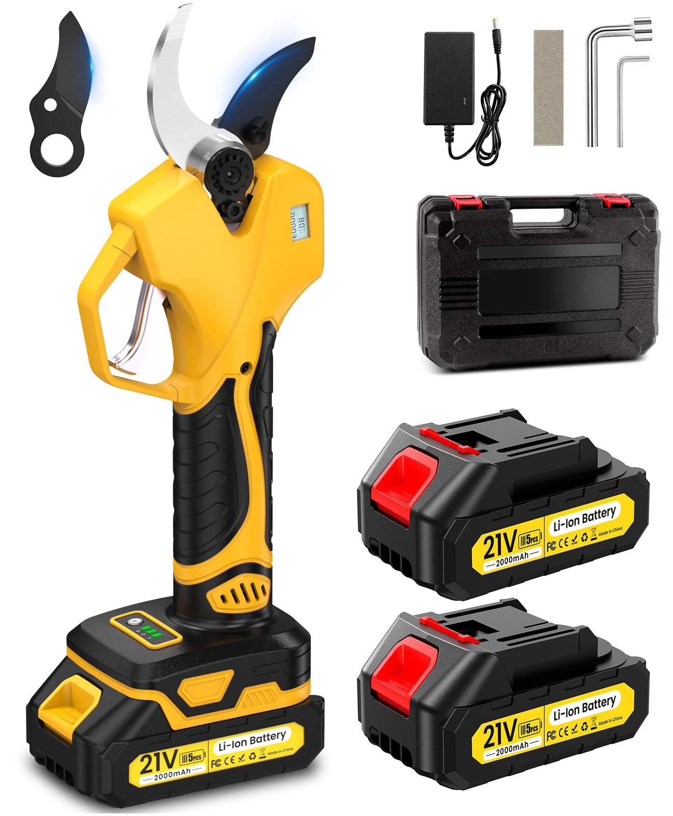 - Alimentate da due batterie da 2000 mAh, queste forbici offrono un'autonomia di funzionamento di 6-10 ore con una singola carica, permettendo di tagliare rami fino a 50 mm di diametro in modo efficiente e con meno sforzo fisico.