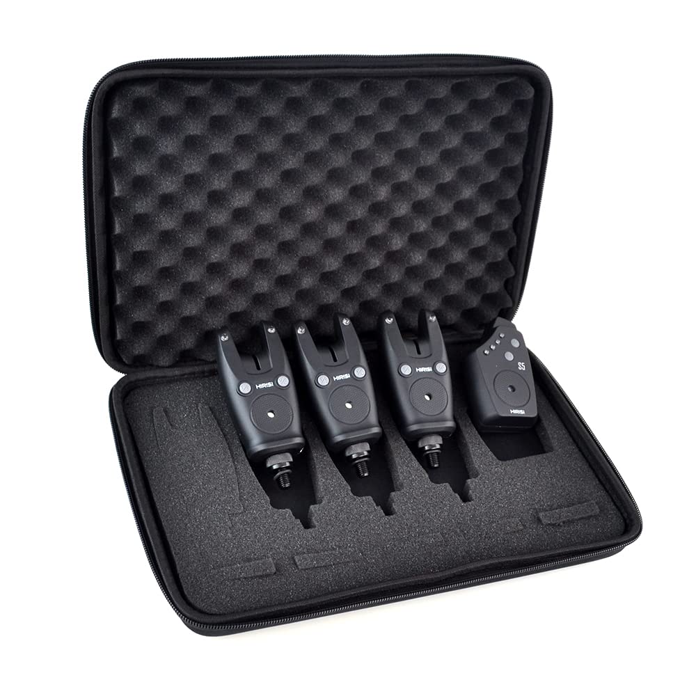 - Il set include un indicatore di abboccata Hirisi Smart Bite S5 e un ricevitore wireless, con una portata superiore a 150 metri, il tutto contenuto in una borsa protettiva con cerniera.