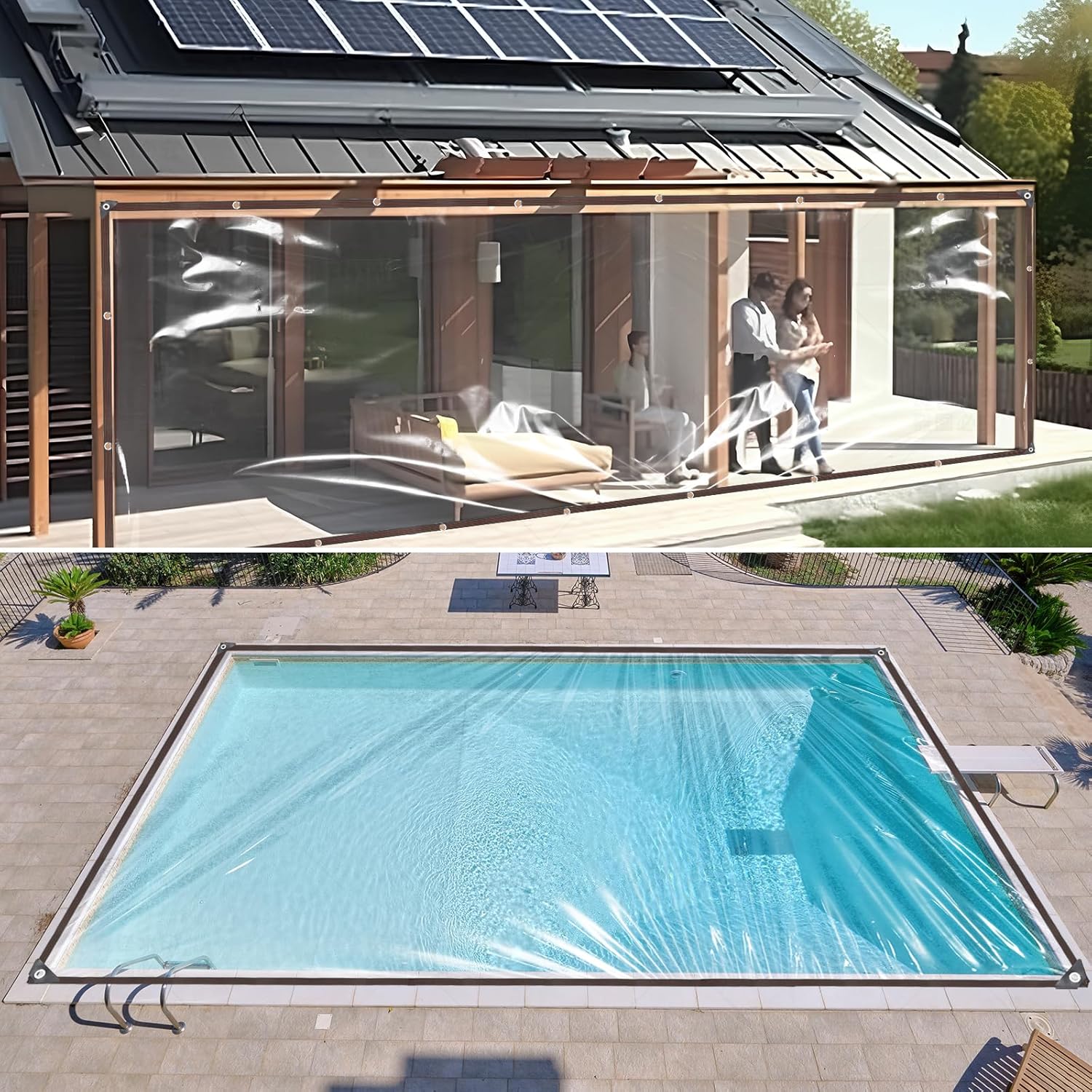 - [Durevole]: il nostro telo è impermeabile, trasparente e realizzato in materiale PE di alta qualità, durevole, antistrappo, impermeabile, antimuffa e resistente al freddo. Estendere questi teloni da tempesta e risparmiare tempo quando si gratta la neve. Coprire la piscina da giardino quando non in uso, indipendentemente dal tempo per evitare che zanzare, foglie secche e animali penetrino all'interno.