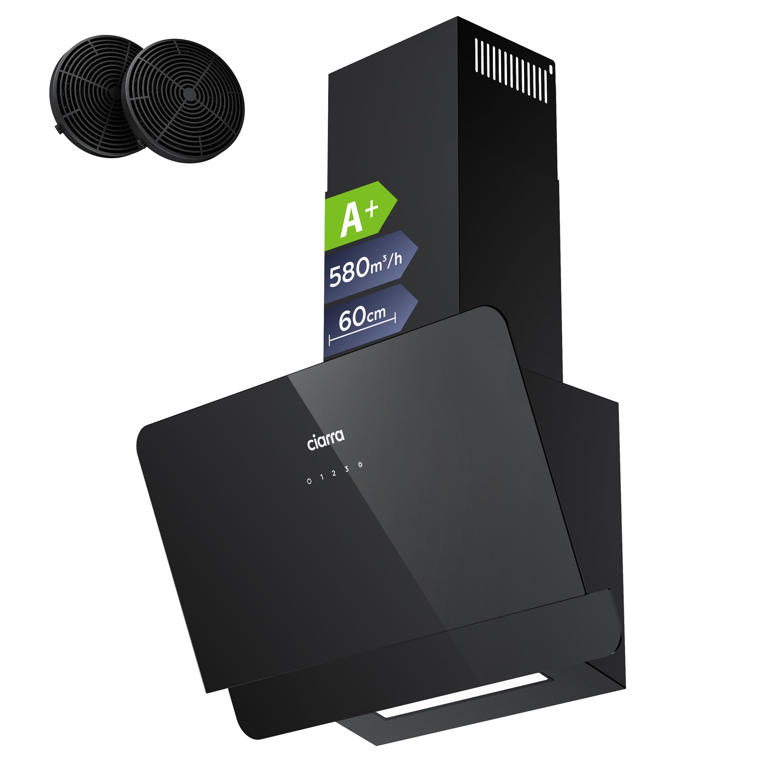 Classe A+ · 580m³/h · 3 velocità · Filtri a carbone inclusi · Inclinata