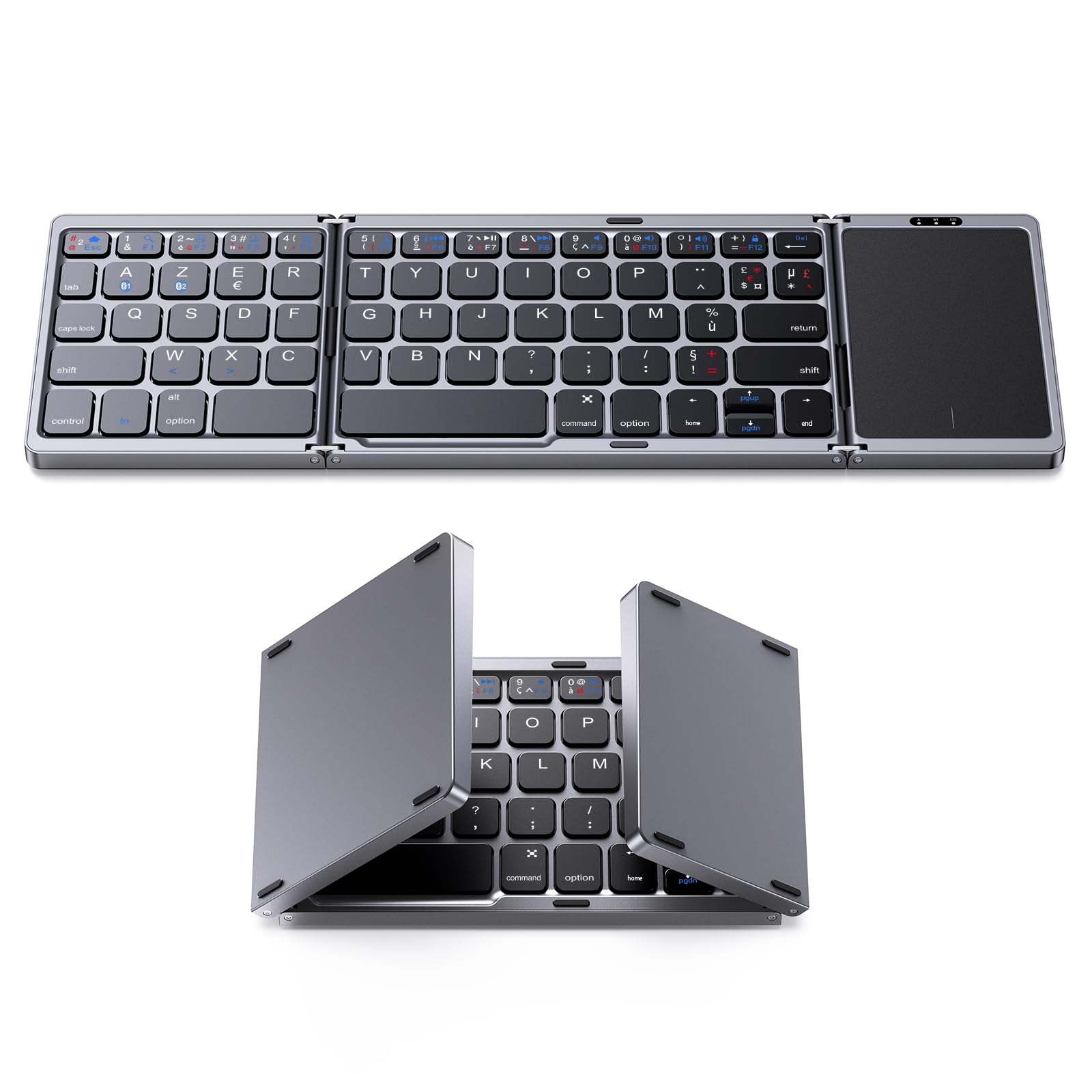 - CHIAVIER PIEGHEVOLE SENZA FILI AZERTY: Basta piegare la tastiera per spegnerla e la tastiera Bluetooth portatile andrà in modalità standby dopo 10 minuti di inattività. Svegliati premendo qualsiasi pulsante e c'è un interruttore on/off per il pieno controllo della funzione