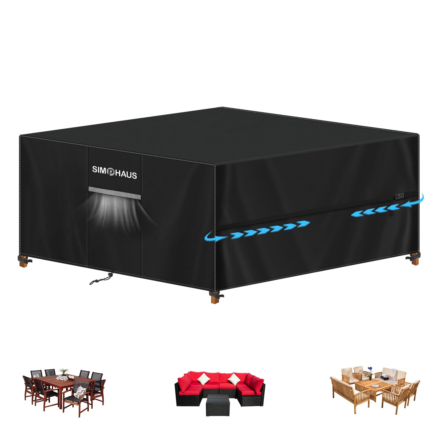 - [Funzionalità] Le telo impermeabile esterno sono dotate di 4 cinghie con chiusura a scatto sul fondo, 2 coulisse regolabili e 2 fibbie antivento su entrambi i lati. Cinghie a scatto fissate sulle gambe dei mobili, coulisse e fibbie strette per evitare che la copertura voli durante il tempo ventoso. Ci sono 2 prese d'aria con rivestimento in rete su entrambi i lati per consentire il passaggio dell'aria e prevenire l'umidità che spesso rende i mobili maleodoranti
