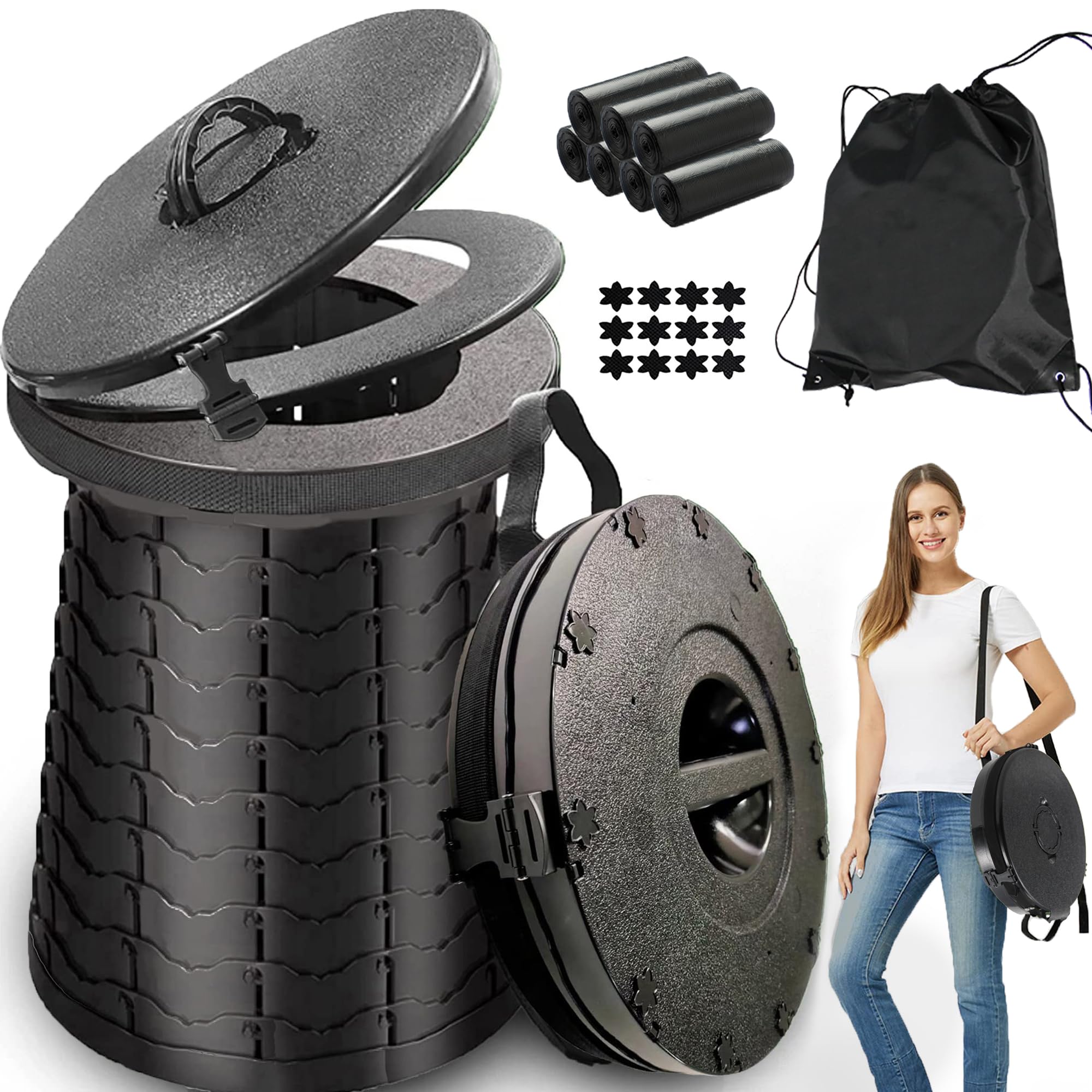 - 【 Sgabello multifunzione 】 Serie di servizi igienici portatili: 1. Design funzionale della copertura, ti permette di cambiare varie modalità di utilizzo, come WC, sgabello, contenitore per la spazzatura, secchio per vomito da donna incinta, WC pieghevole per esterni, sgabello pieghevole per la casa. 2. Lavabile e forte resistenza alla caduta e alla pressione, può contenere fino a 181,4 kg