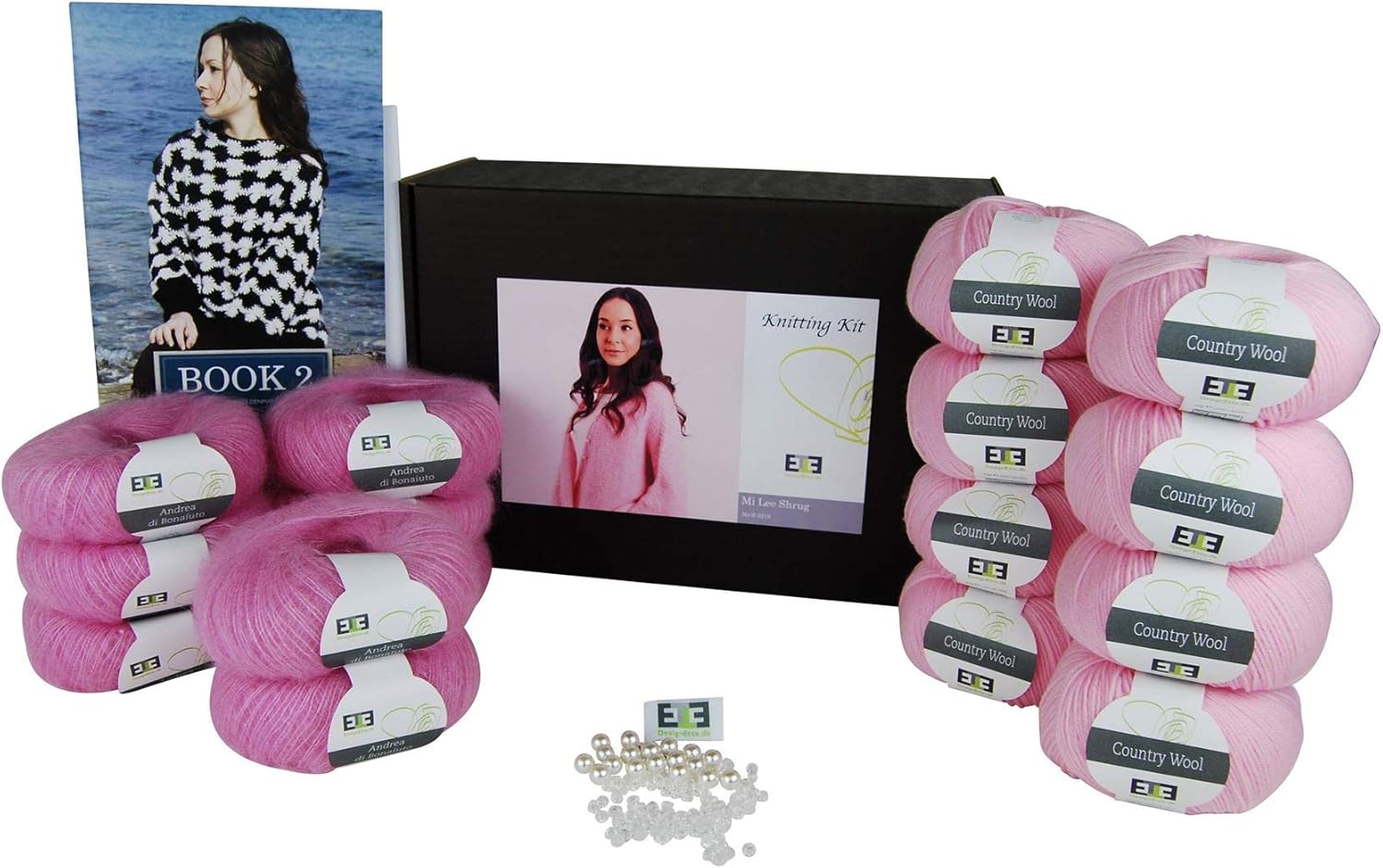 - Il kit di maglieria Mi Lee Shrug per adulti include palline di filato e libretto con motivo (Nordic Ecolabel), motivo volantino per "Mi Lee Shrug", perline acriliche leggere Swarovski, più un'etichetta in una scatola artigi