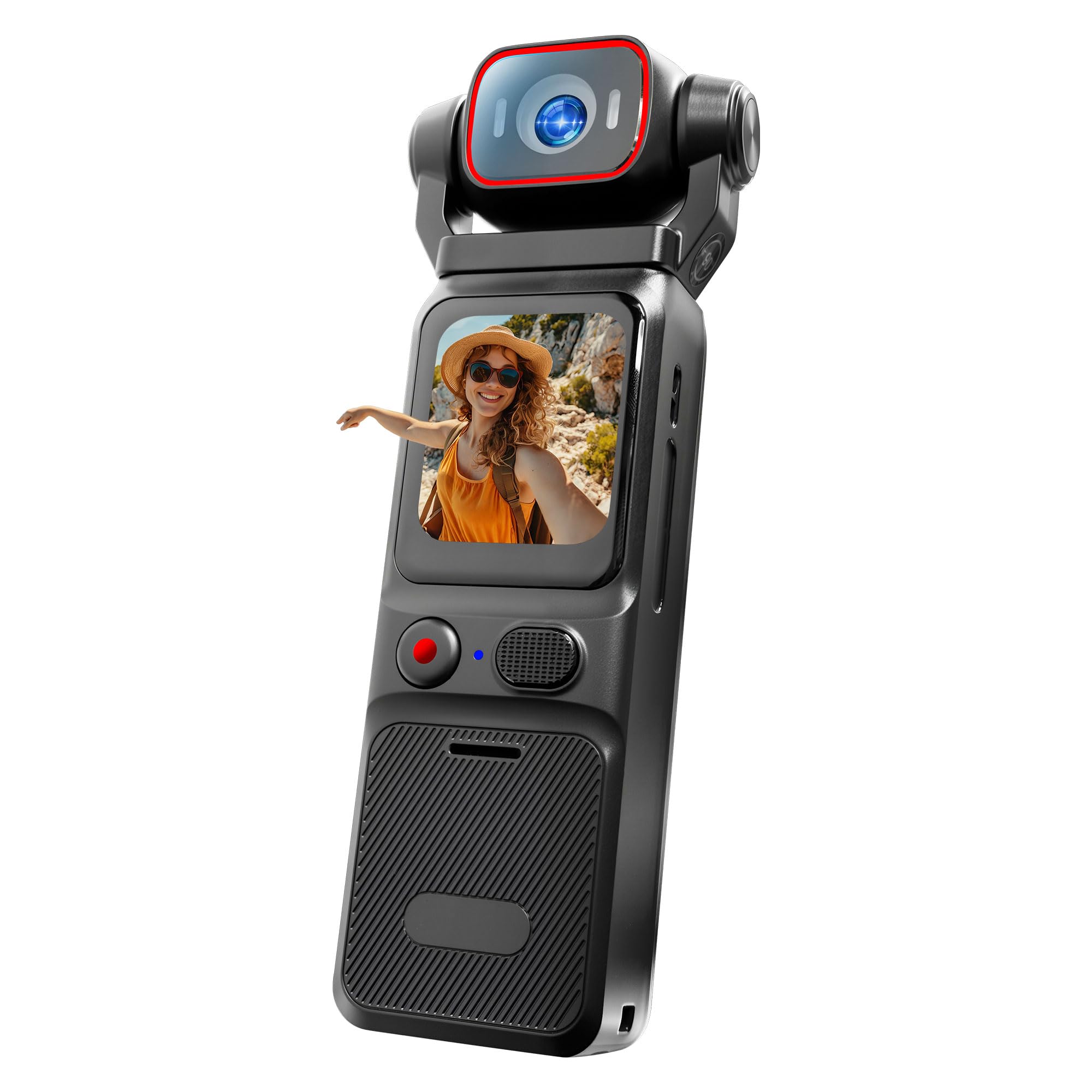 - Controllo Flessibile + Angolo Ampio, Composizione Più Libera - Questa Tascabile Rotazione 180° Telecamera dispone di un grande touchscreen da 1.68 pollici, con obiettivo rotabile 180° verticalmente e 90° orizzontalmente, oltre a un design ad angolo ampio di 160°. Come POV Camera Portatile, facilita le riprese multiangolo orizzontali e verticali, rendendo ogni composizione semplice e adatta a diverse esigenze di ripresa.
