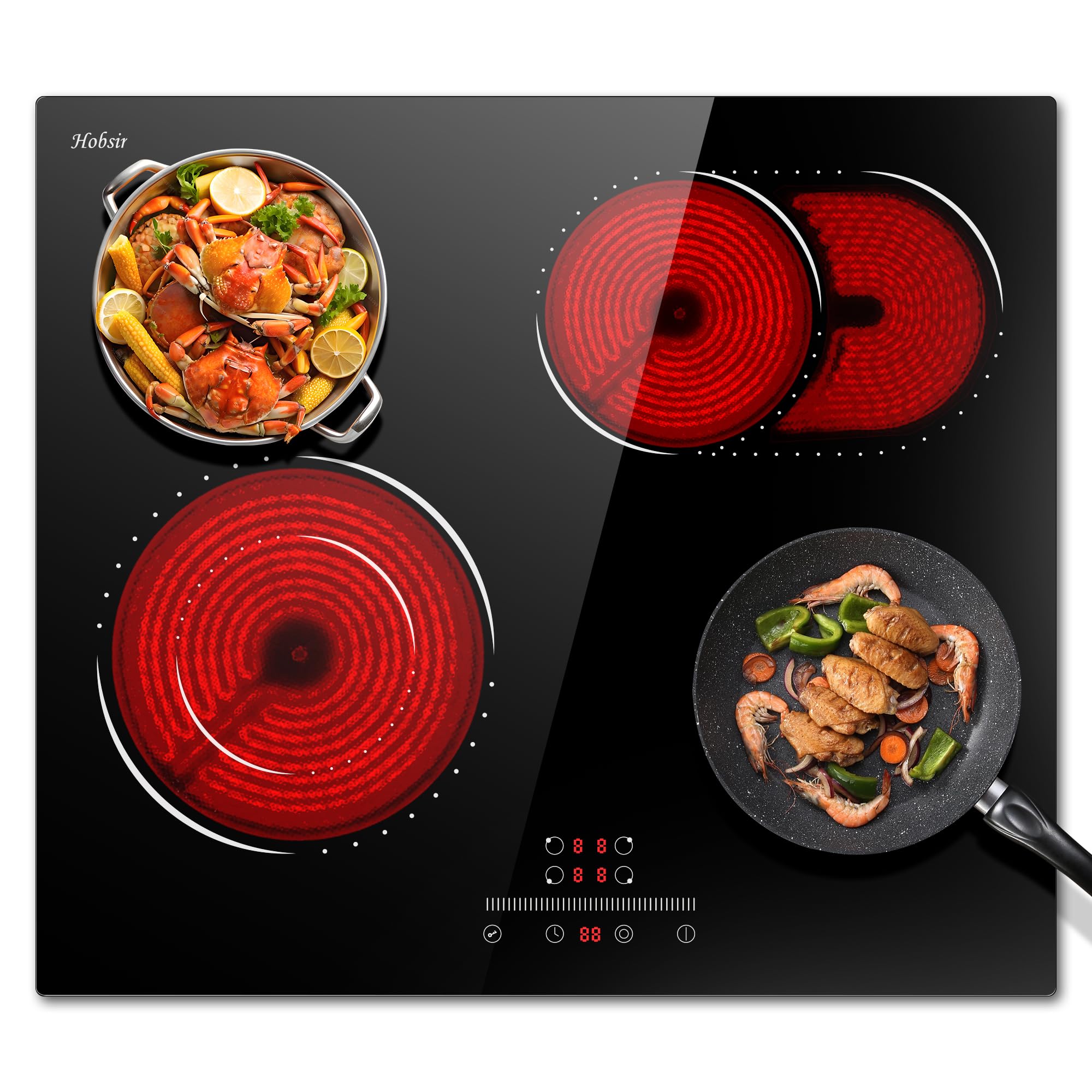 Hobsir hob 4 Zonen Piano Cottura Vetroceramica 4 Fuochi, Piano Cottura Elettrico in Vetroceramica con Zona Ovale, Piano Cottura Elettrico 59cm, Controllo a Scorrimento