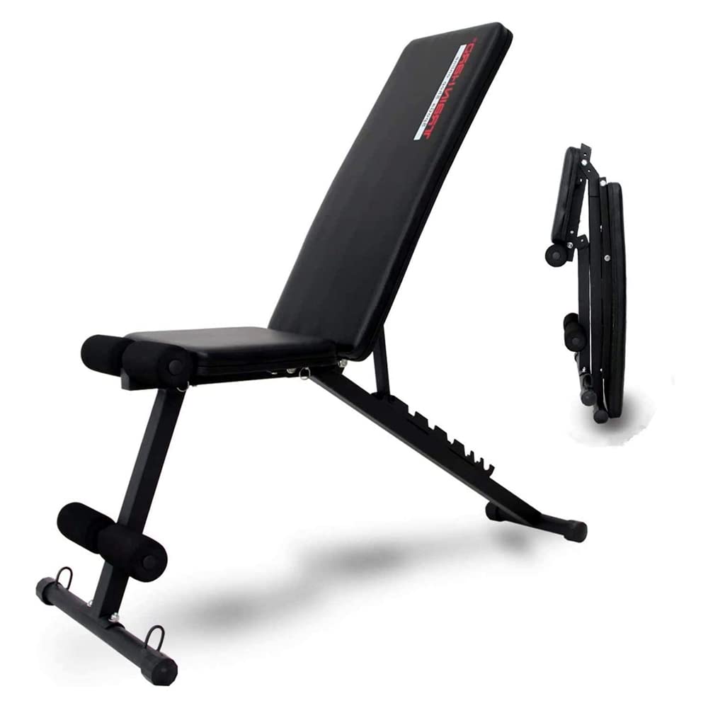 - Facile da montare e piegare: il tavolo contrappeso può essere regolato con viti. Una volta piegato, lo sgabello è perfetto per risparmiare spazio dietro la porta o sotto il letto: una perfetta stazione fitness e una panca versatile che è davvero adatta alle famiglie.