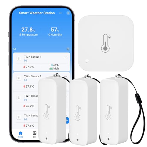 - Monitoraggio multipunto: la nostra stazione meteo supporta 9 sensori esterni per monitorare varie posizioni come stanze, cortili o serre. Confronta facilmente le temperature interne ed esterne con un clic. Il raggio di comunicazione tra il sensore di temperatura e umidità Wi-Fi e la stazione base è fino a 150 metri.