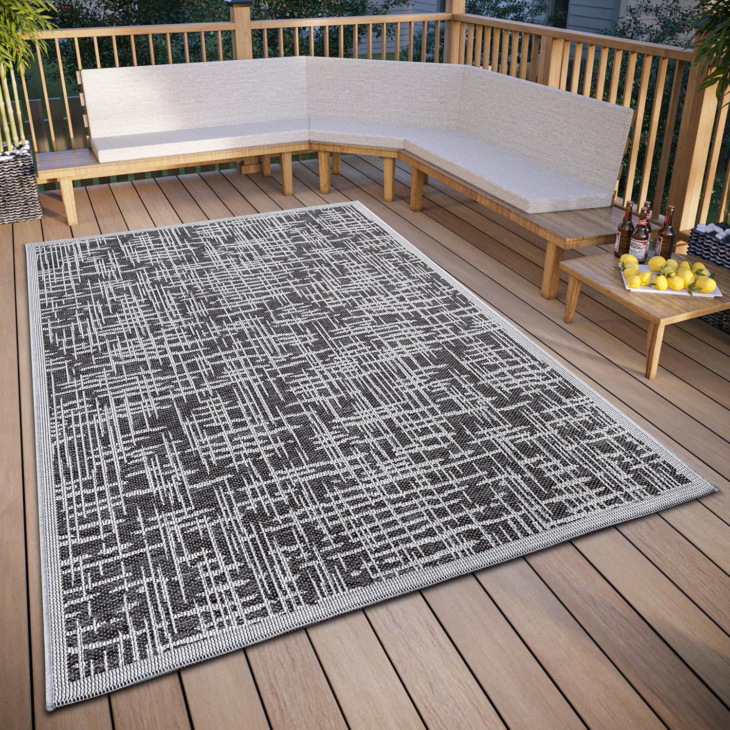 - Tappeto da esterno in tessuto piatto: robusto tappeto con struttura a trama piatta, ideale per l'uso all'aperto su terrazze, balconi o giardini.
