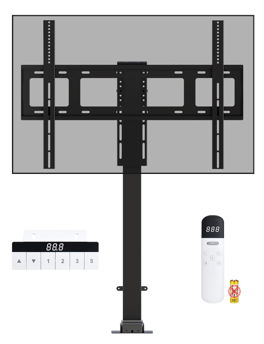 - La capacità massima di carico dell'ascensore elettrico è di 120KG. L'altezza iniziale è 990MM, l'altezza massima è 2440MM e la velocità è di 25MM/S.per 70-100 pollici TV