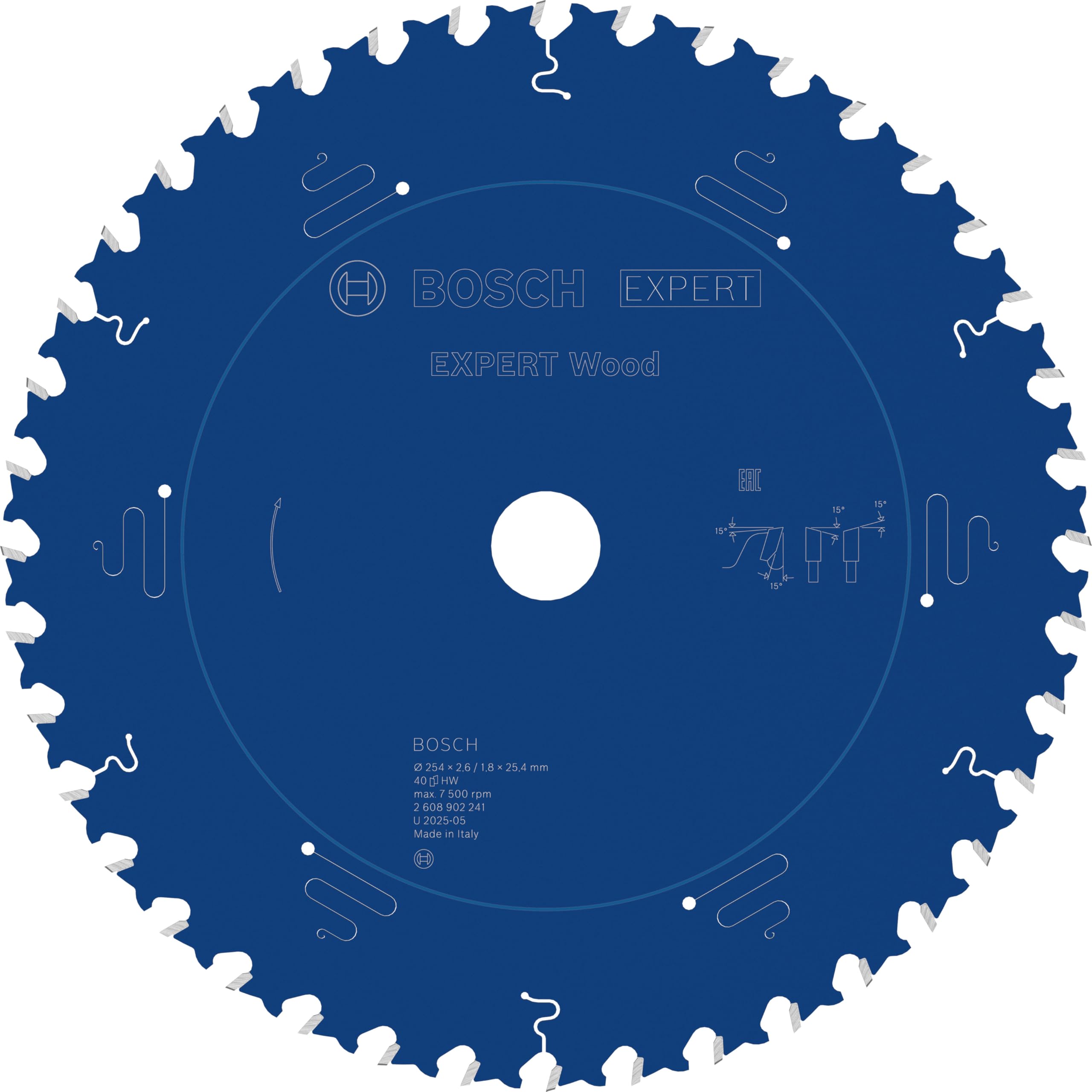 - Dotazione di fornitura: EXPERT Wood Circular Saw Blade, 254 x 2.6/1.8 x 25.4 mm, T40