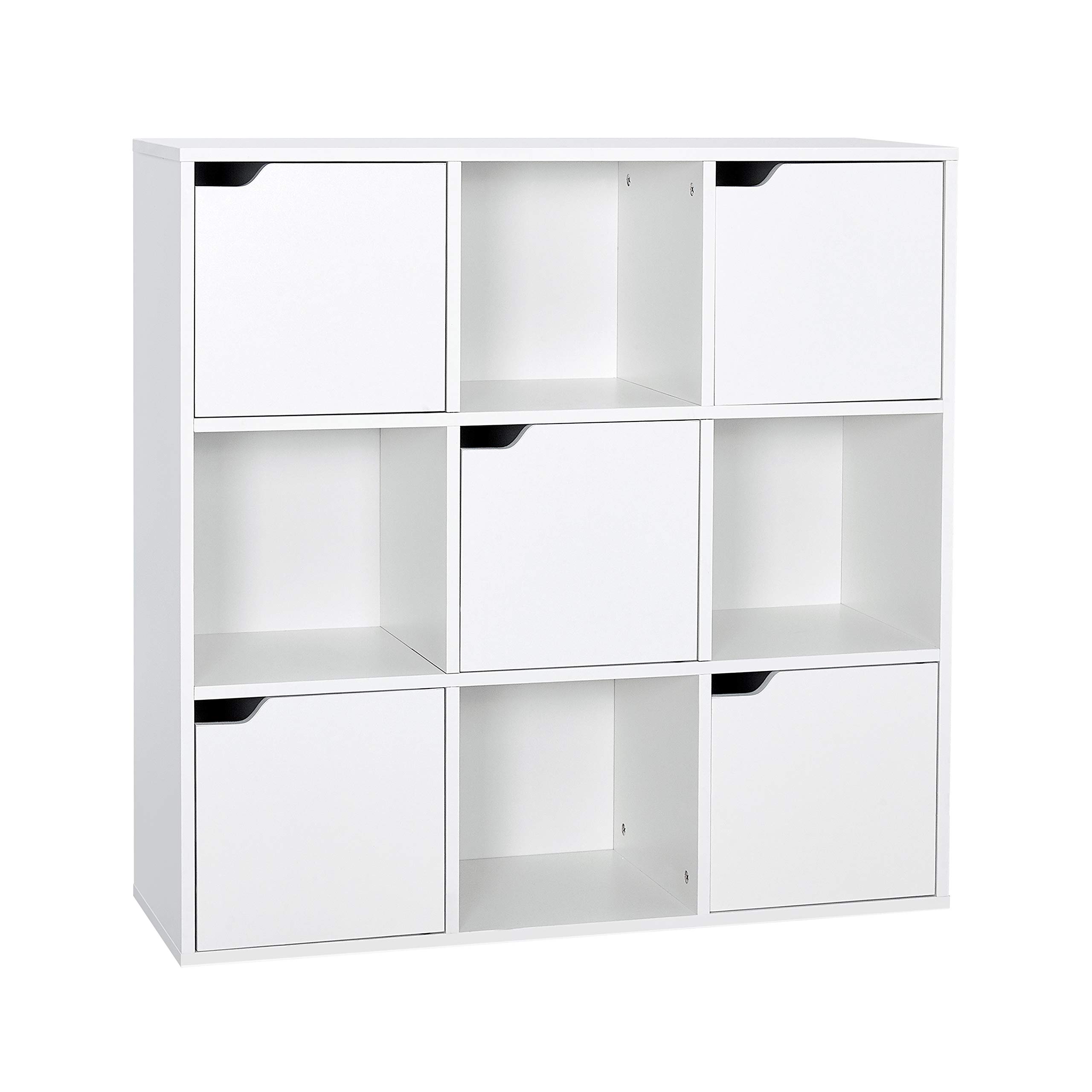 Meerveil Libreria Bianca a 9 Cubi con 5 Ante