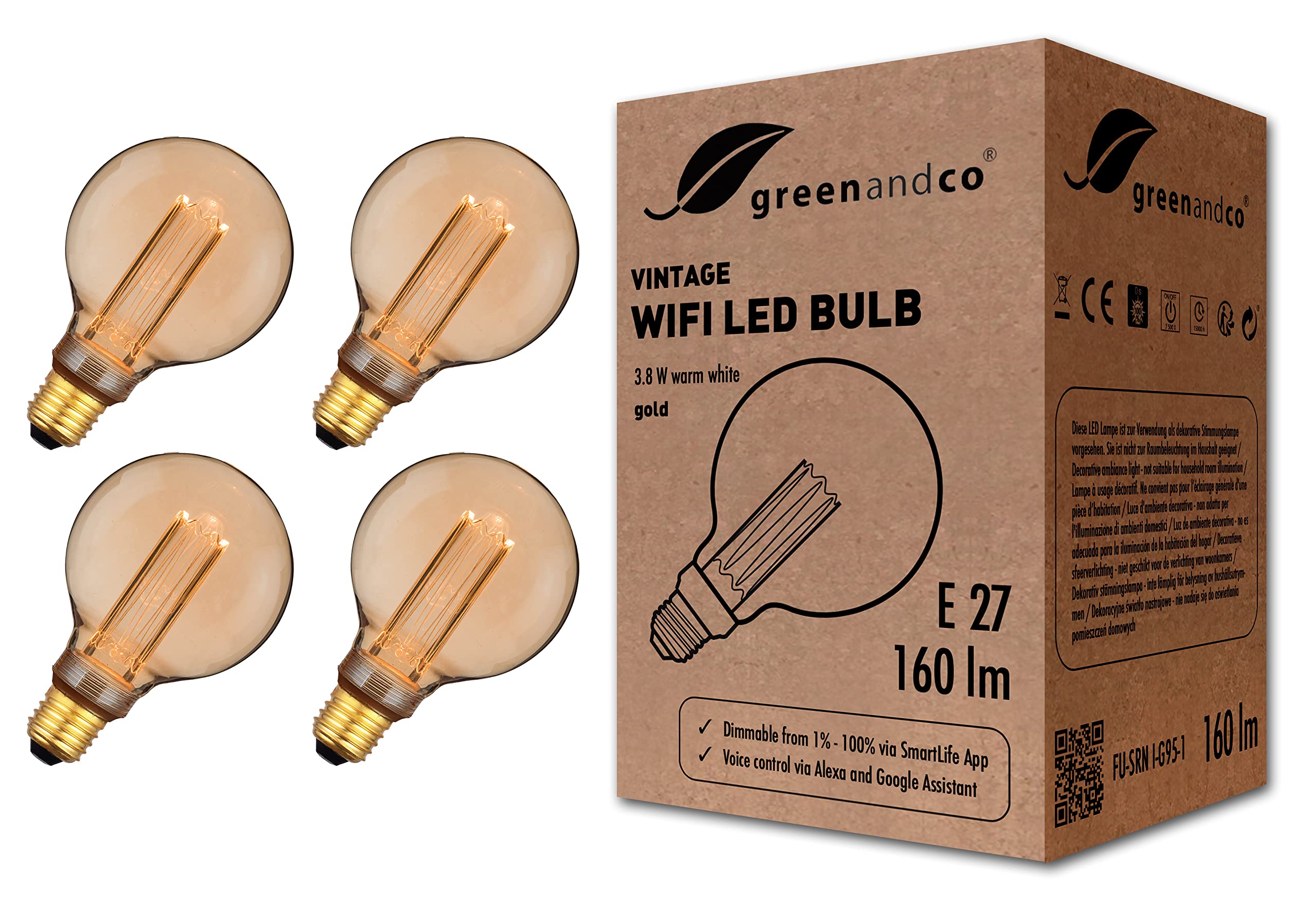 Greenandco 4x Lampadina LED Smart WiFi E27 G95 3.8W