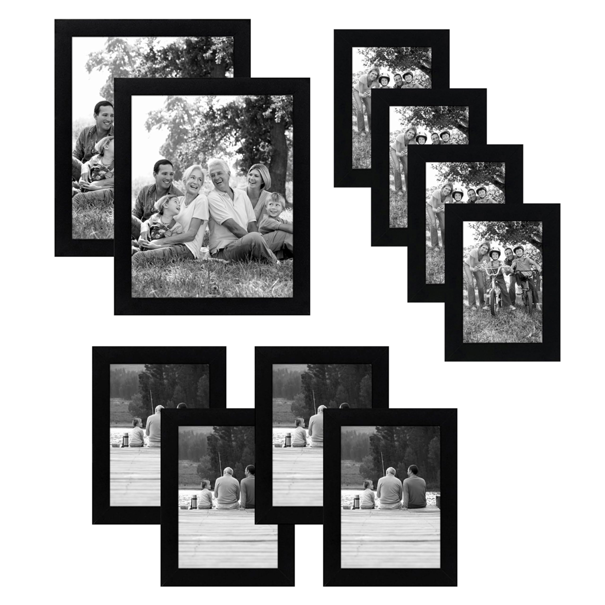 Americanflat Set Cornici Foto da Parete e da Tavolo Nere, 10 Pezzi - Due da 20x25 cm, Quattro da 13x18 cm e Quattro da 10x15 cm - Composizione Cornici da Parete con Vetro Infrangibile